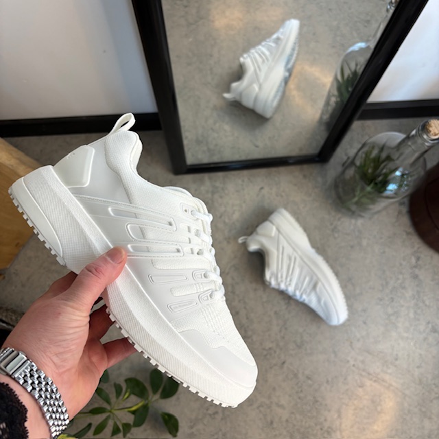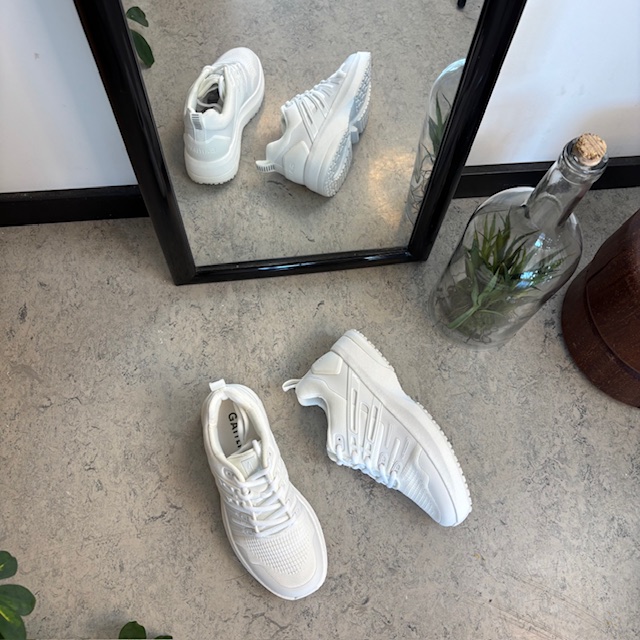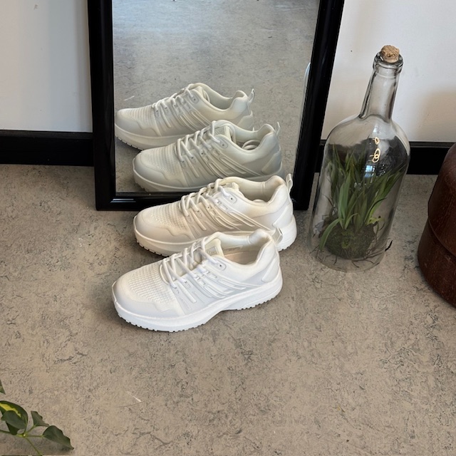 Hvid letvægtssko fra Gaitline med optimal af støddæmpning og svangstøtte