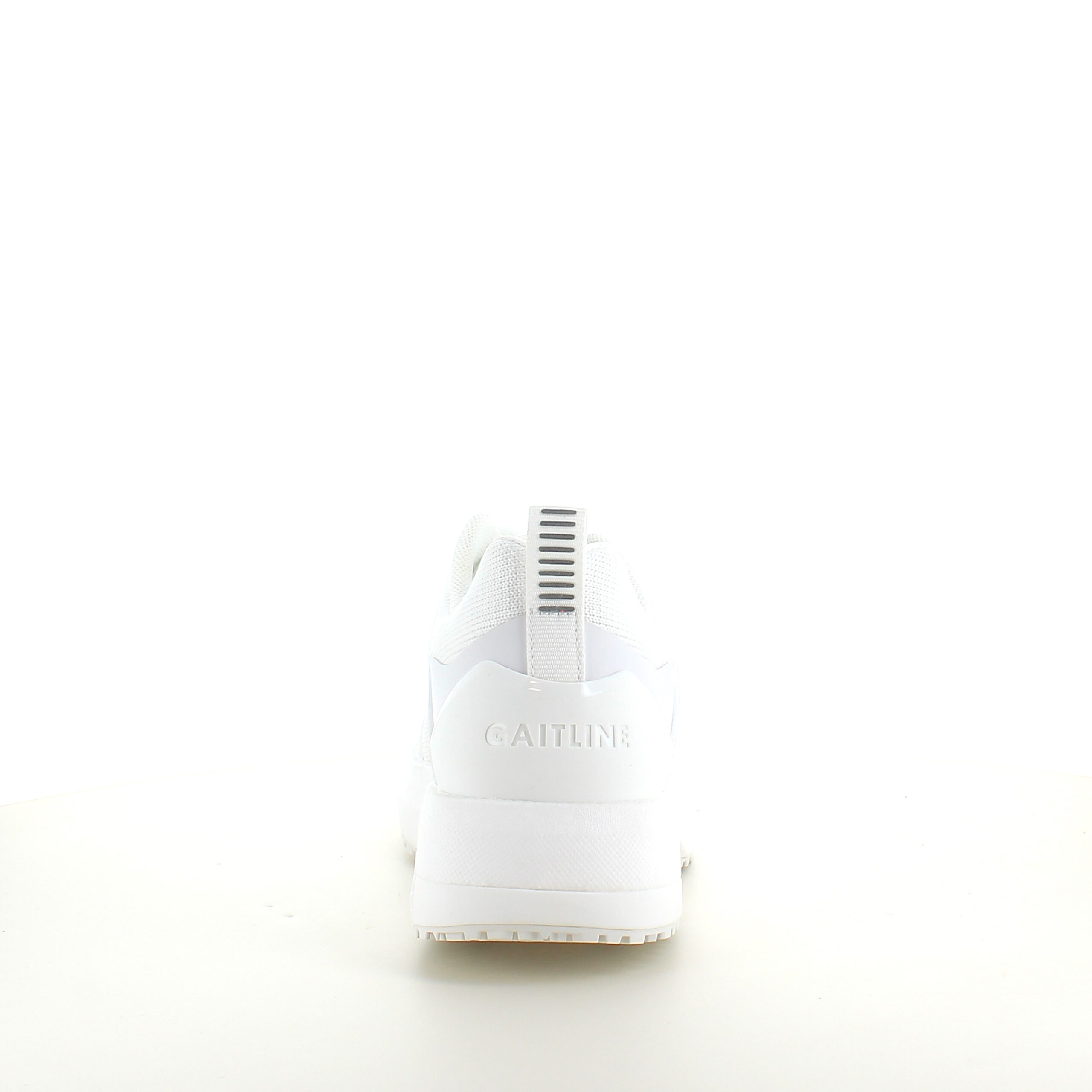 Denne hvide sko fra Gaitline har en sømløs, elastisk overdel, der tilpasser sig fodens ændringer, hvilket sikrer en letvægtsoplevelse med god åndbarhed.