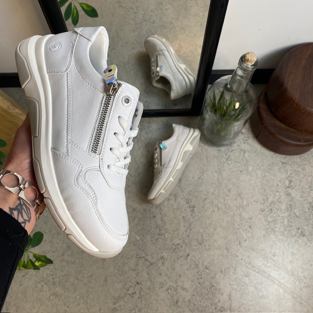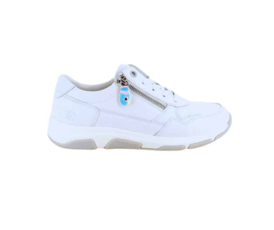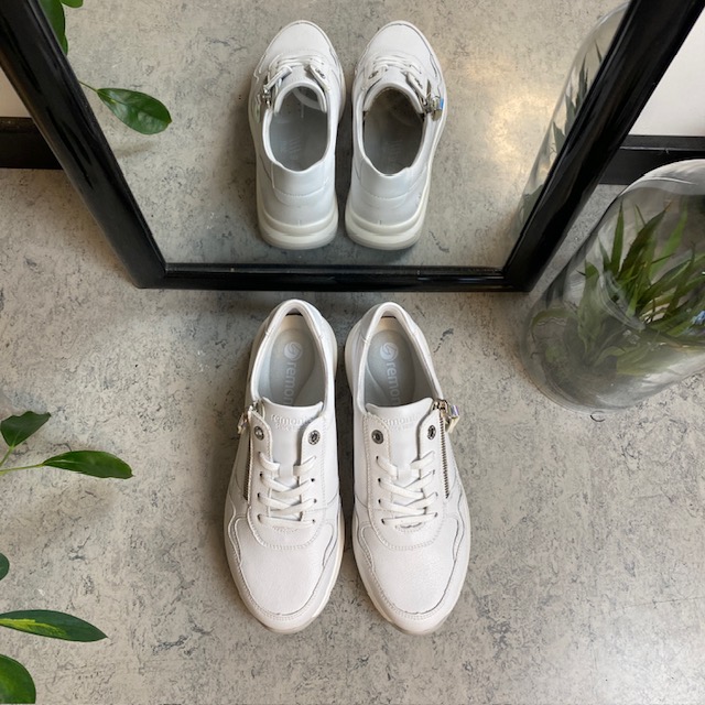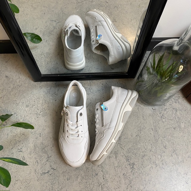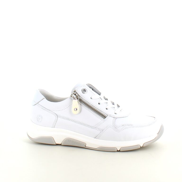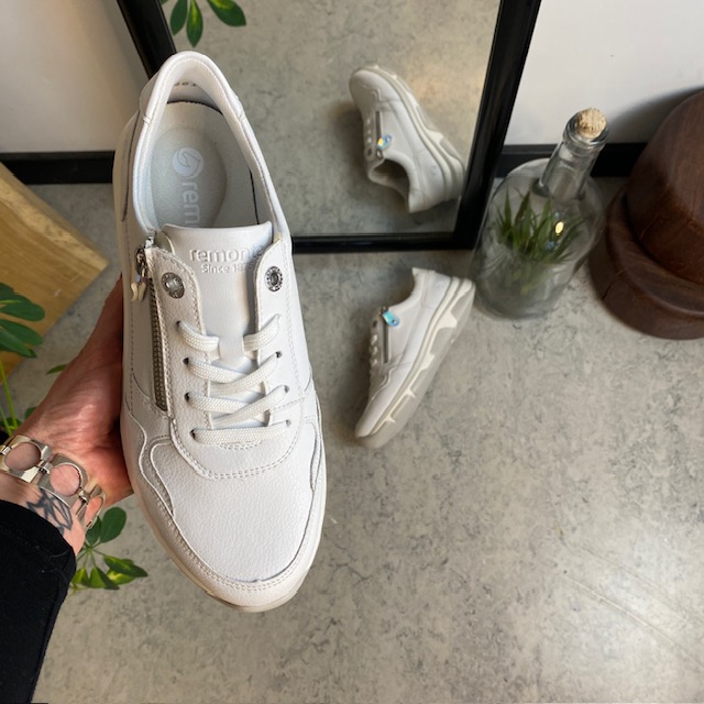 Denne elegante hvid skindsko fra Remonte kombinerer både snøre- og lynlåslukning for optimal komfort og stil.
