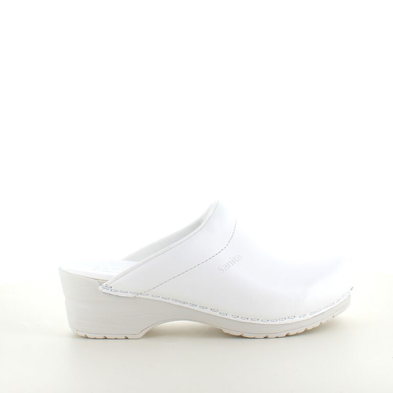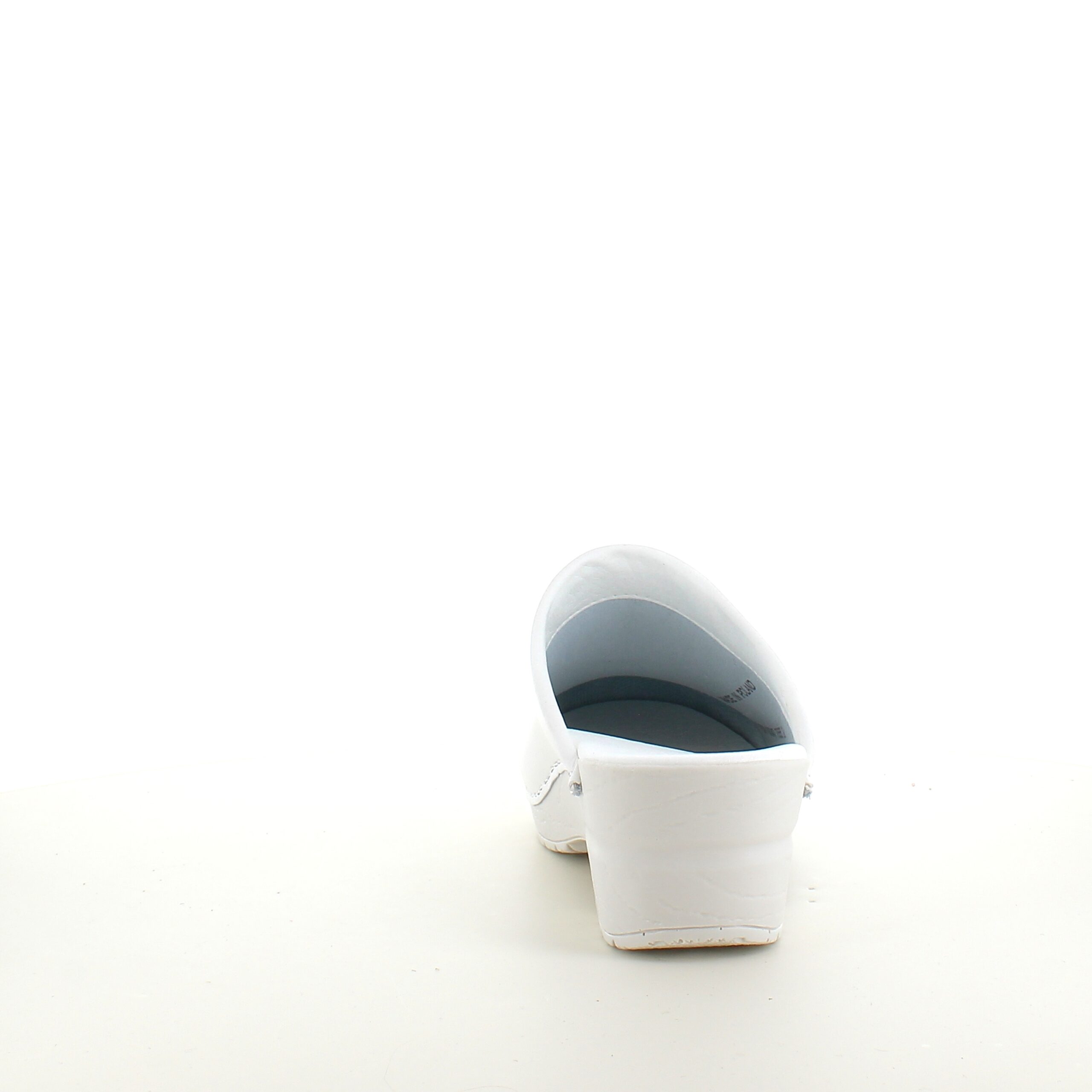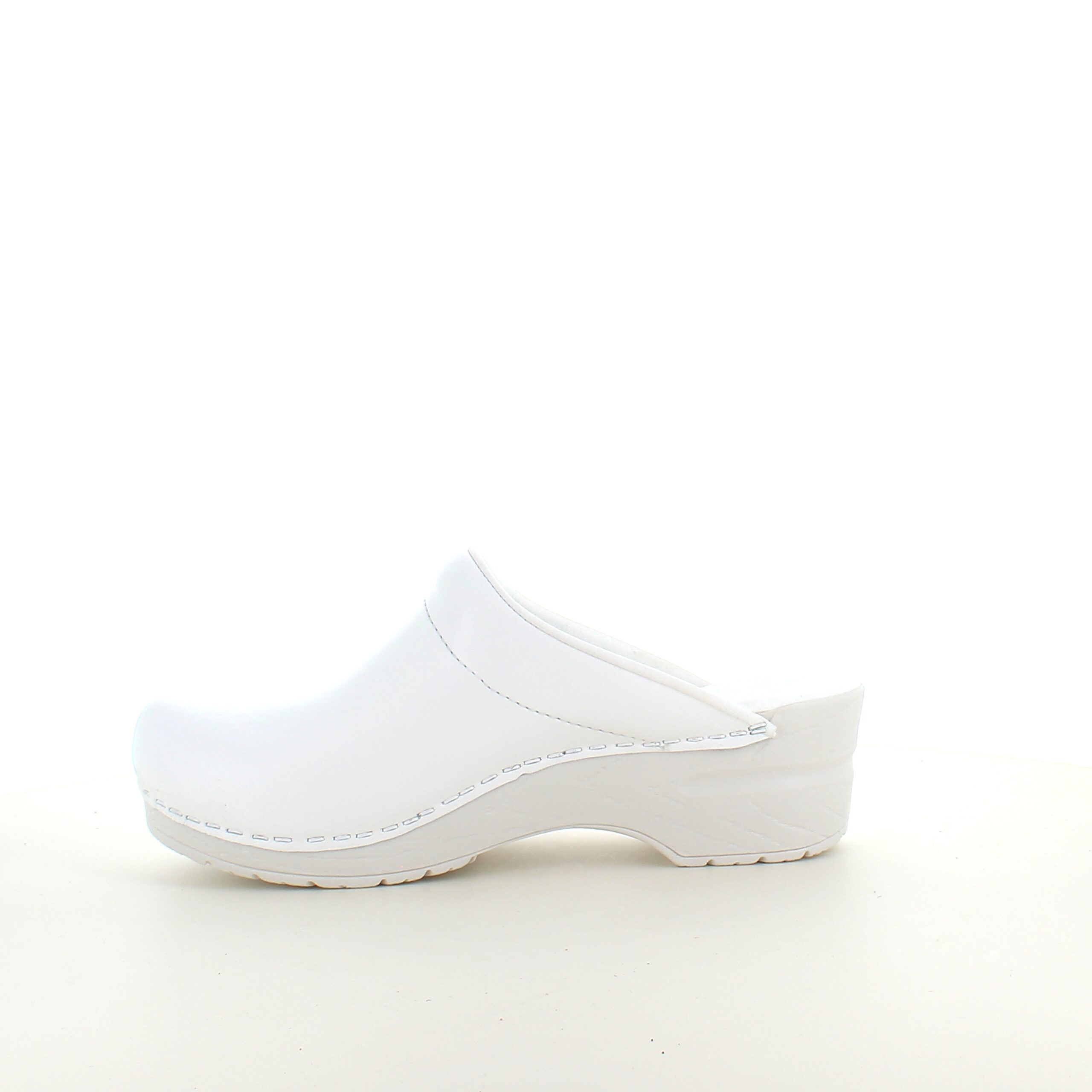 Disse hvide træsko er lavet af PU-læder, hvilket gør dem lette at rengøre og ideelle til professionel brug.