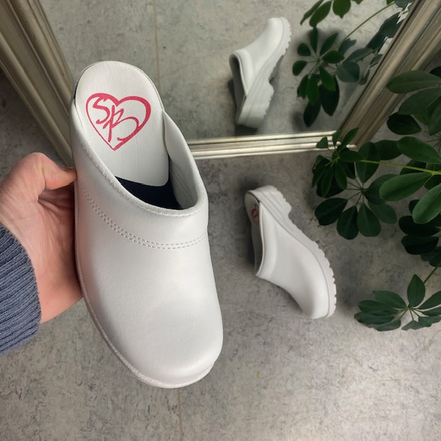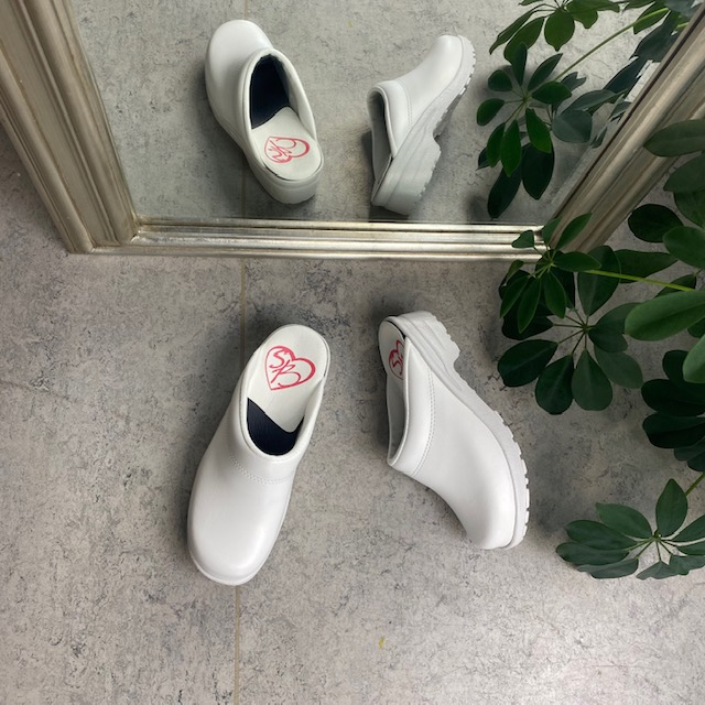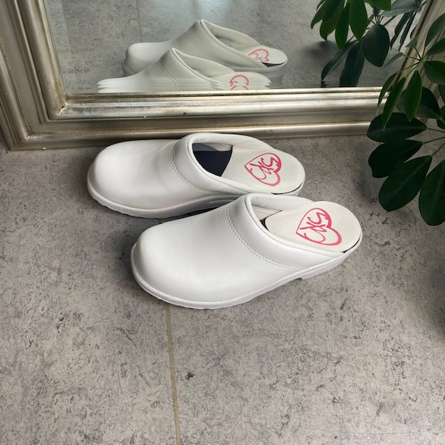 Hvid skind træsko uden kap