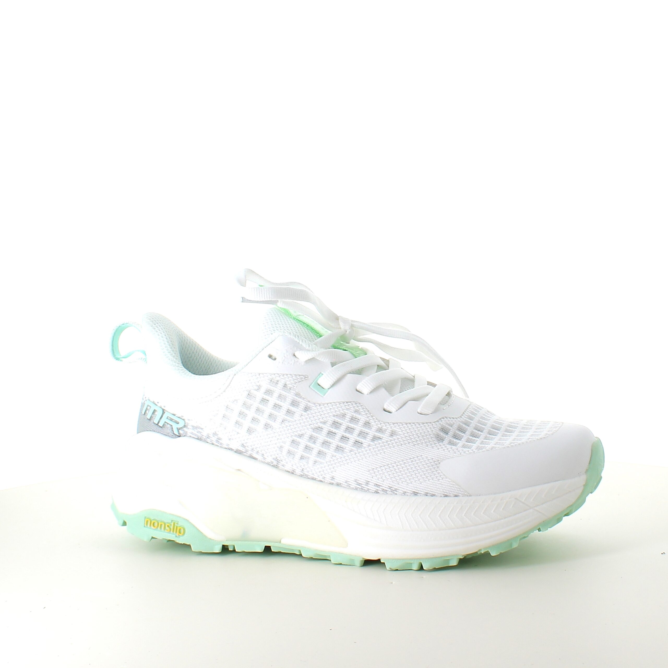 Denne hvide letvægtssko kombinerer et sporty look med praktiske funktioner.