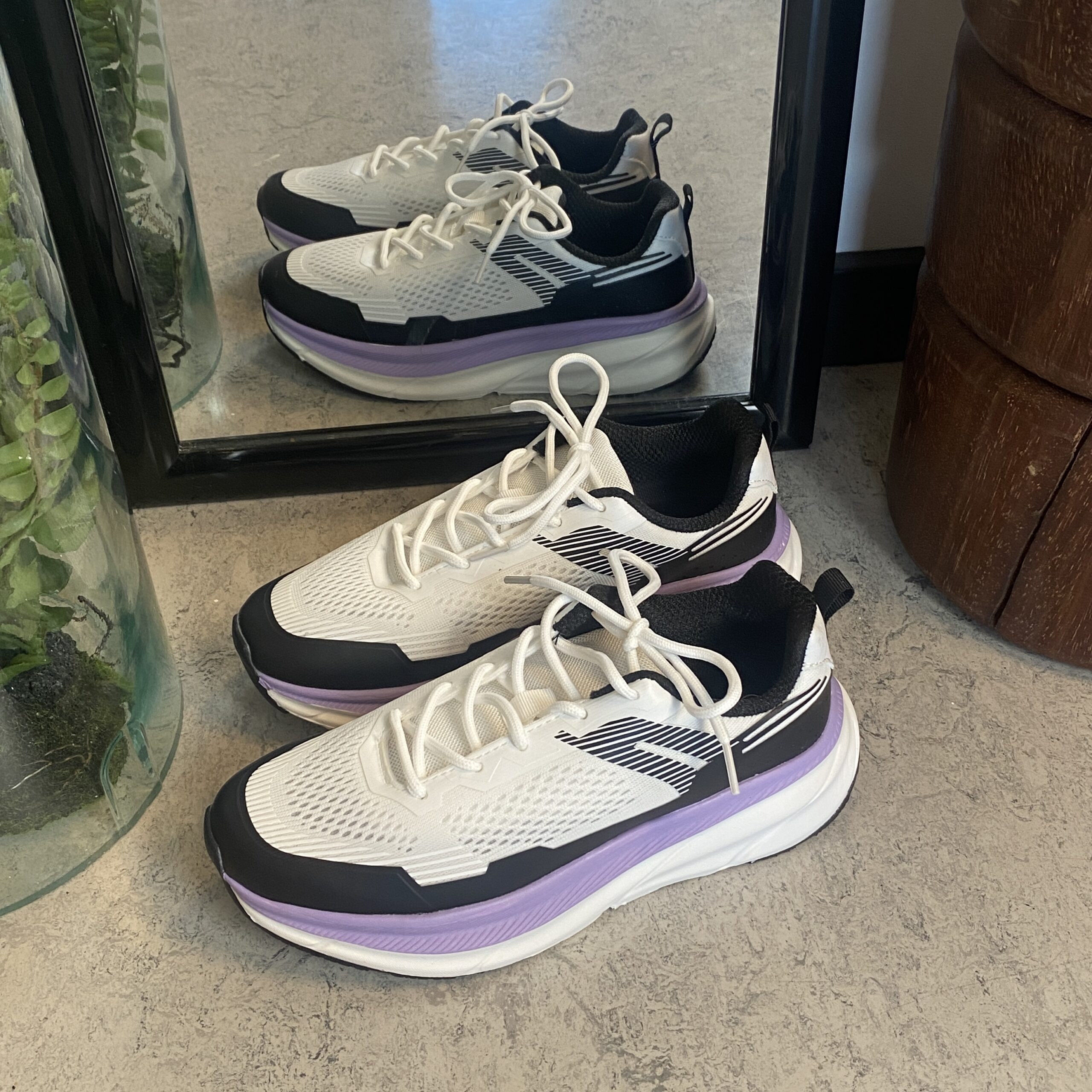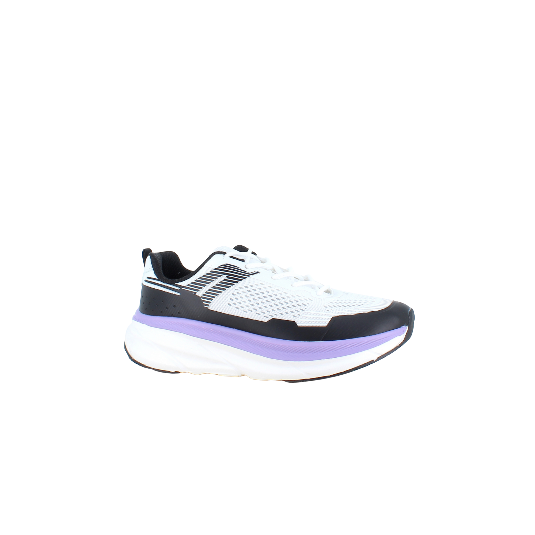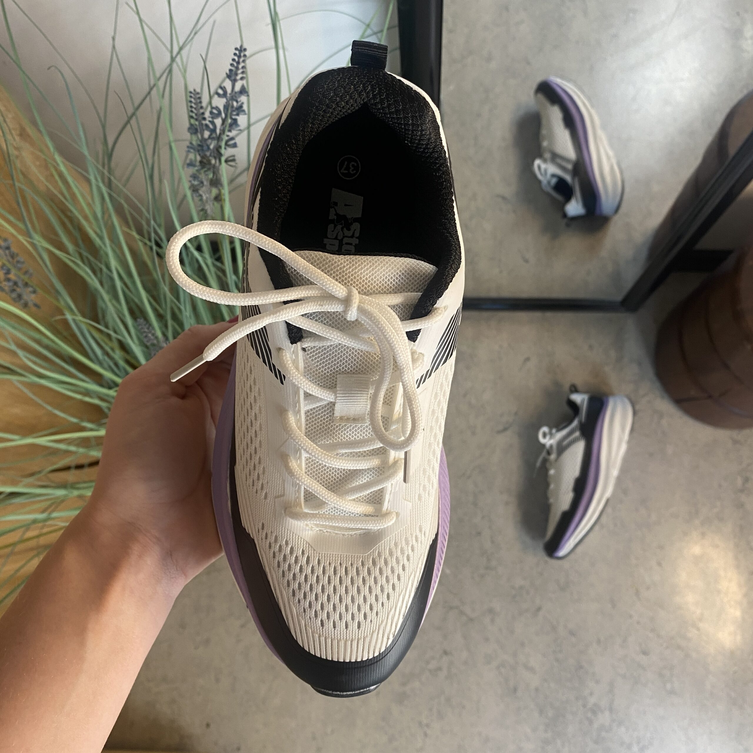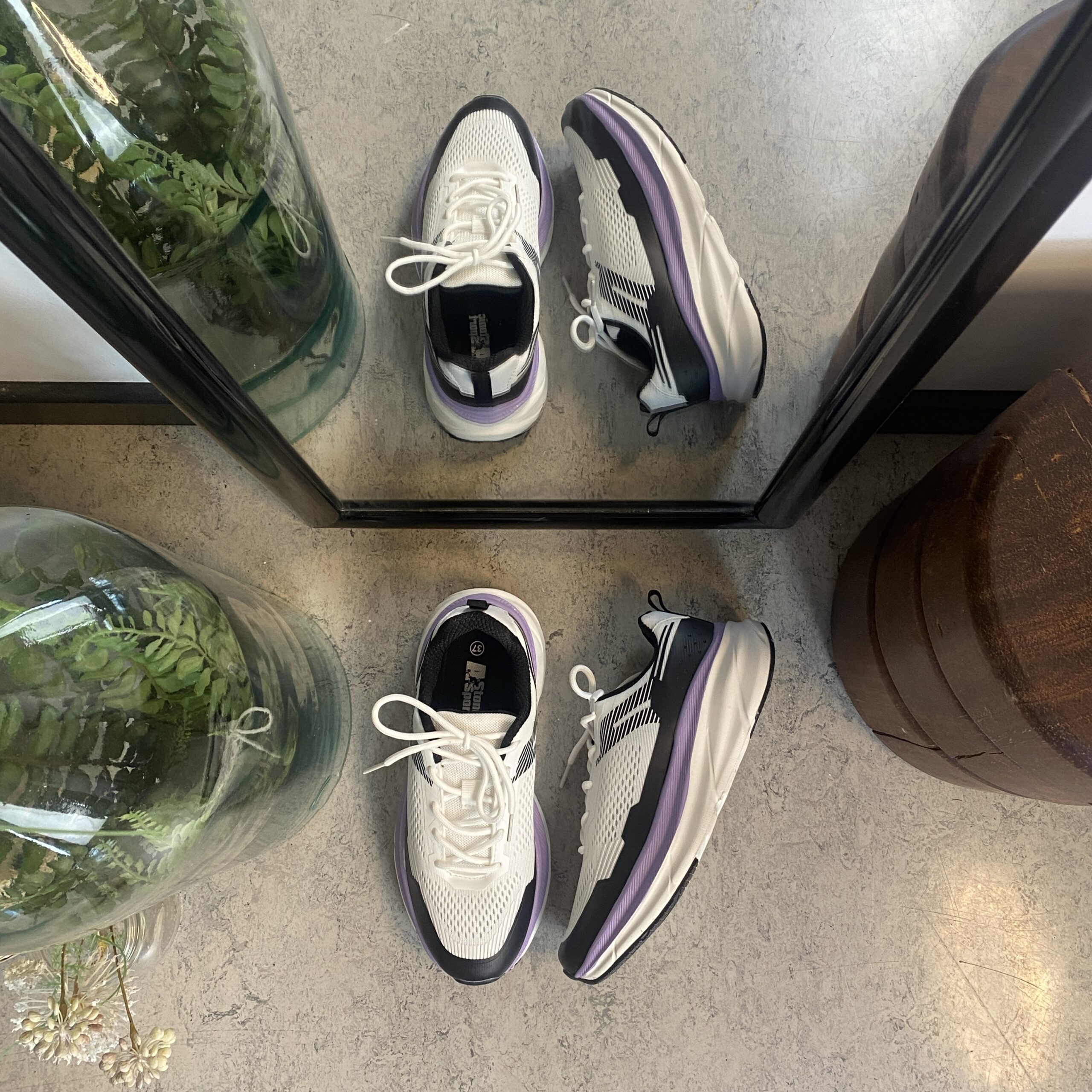 En solid mellemsål giver god støddæmpning og affjedring, mens et let mønster i ydersålen sikrer stabilt greb på forskellige underlag.