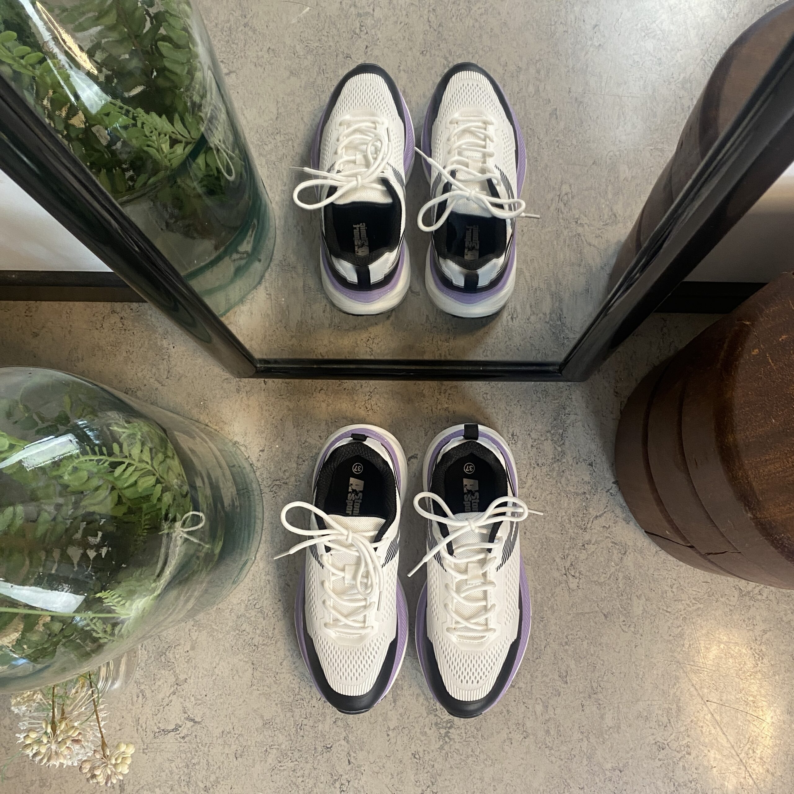 Sko med overdel i åndbart hvidt mesh, der holder fødderne kølige og komfortable hele dagen.