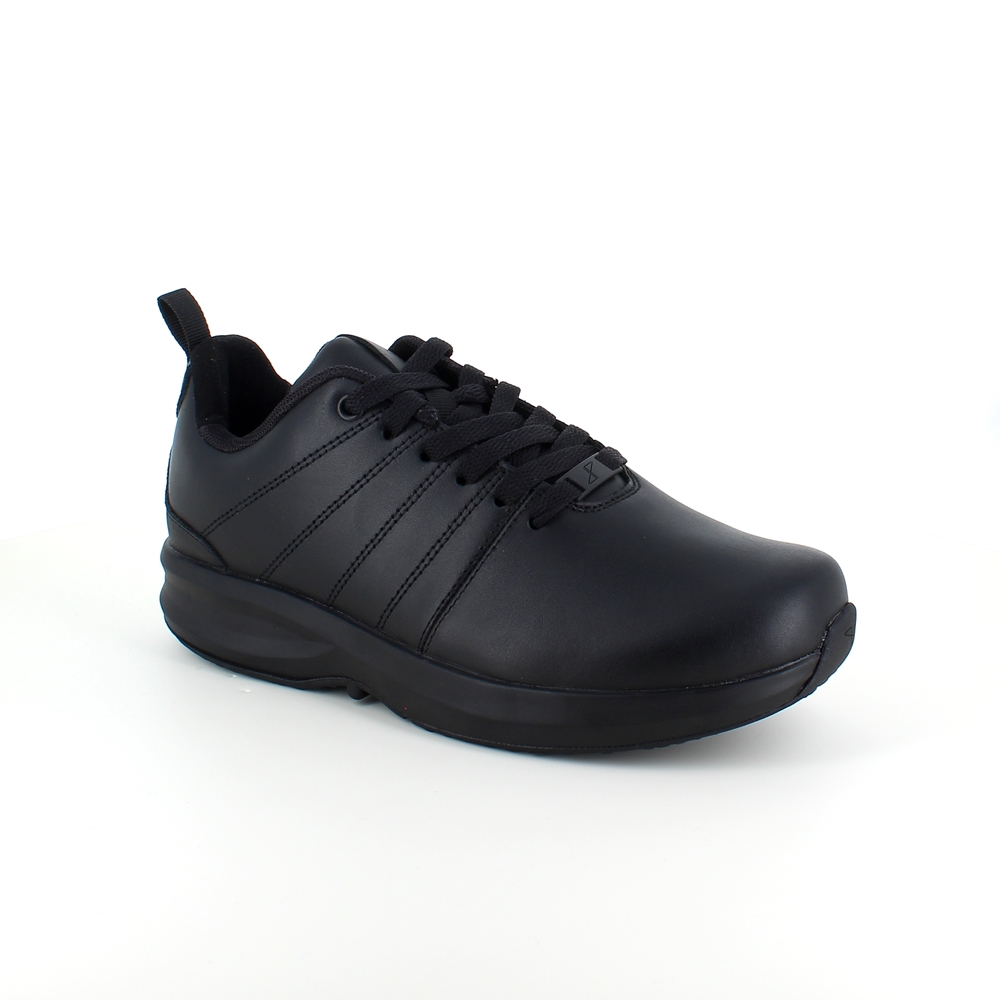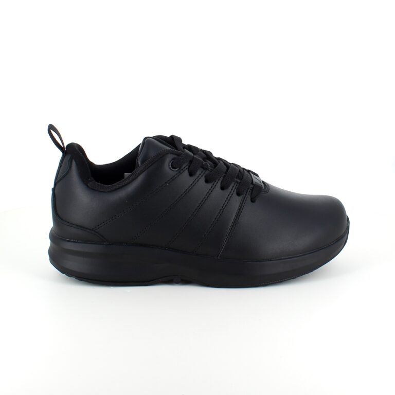 Skoen er udviklet til at gå og stå på hårde underlag i lang tid uden at få smerter i fødder eller underben.