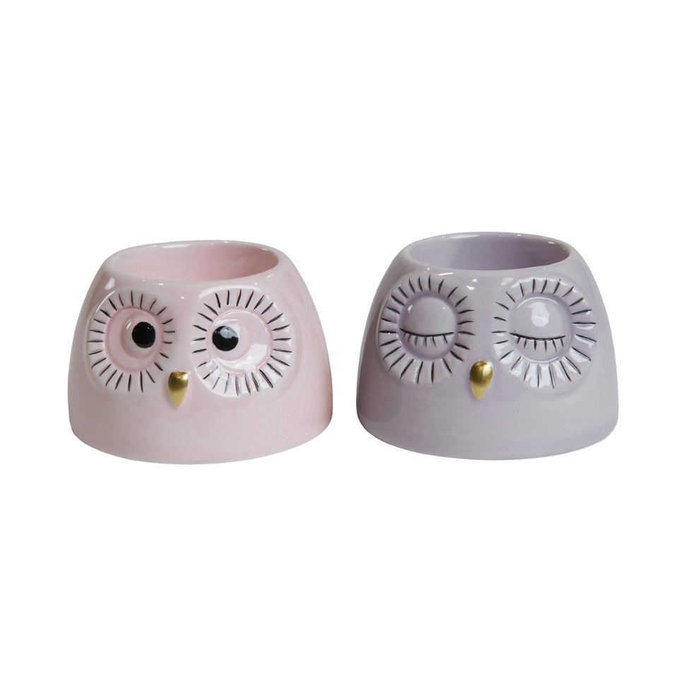 Kloge ugler, Fyrfadsstager 5 x 8cm, lilla