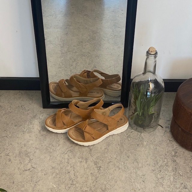 Komfortabel og let sandal i smukt camel-farvet – perfekt til dig, der er på benene hele dagen
