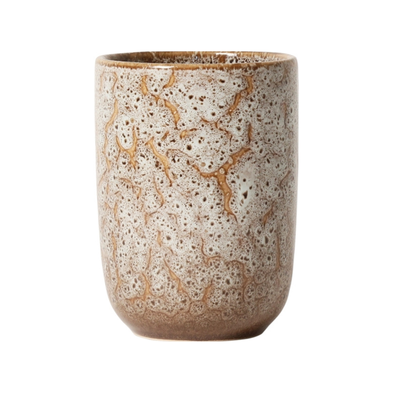 Træd ind i en verden af subtil elegance med vores brune krus, der kommer uden håndtag og måler 8×12 cm. Dette krus er skabt til at tilføje en ekstra dimension af stil til din daglige drikkeoplevelse.