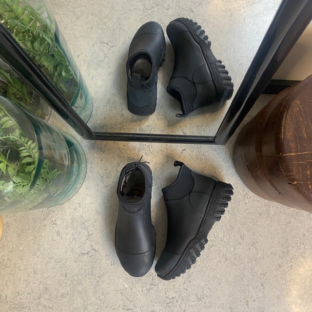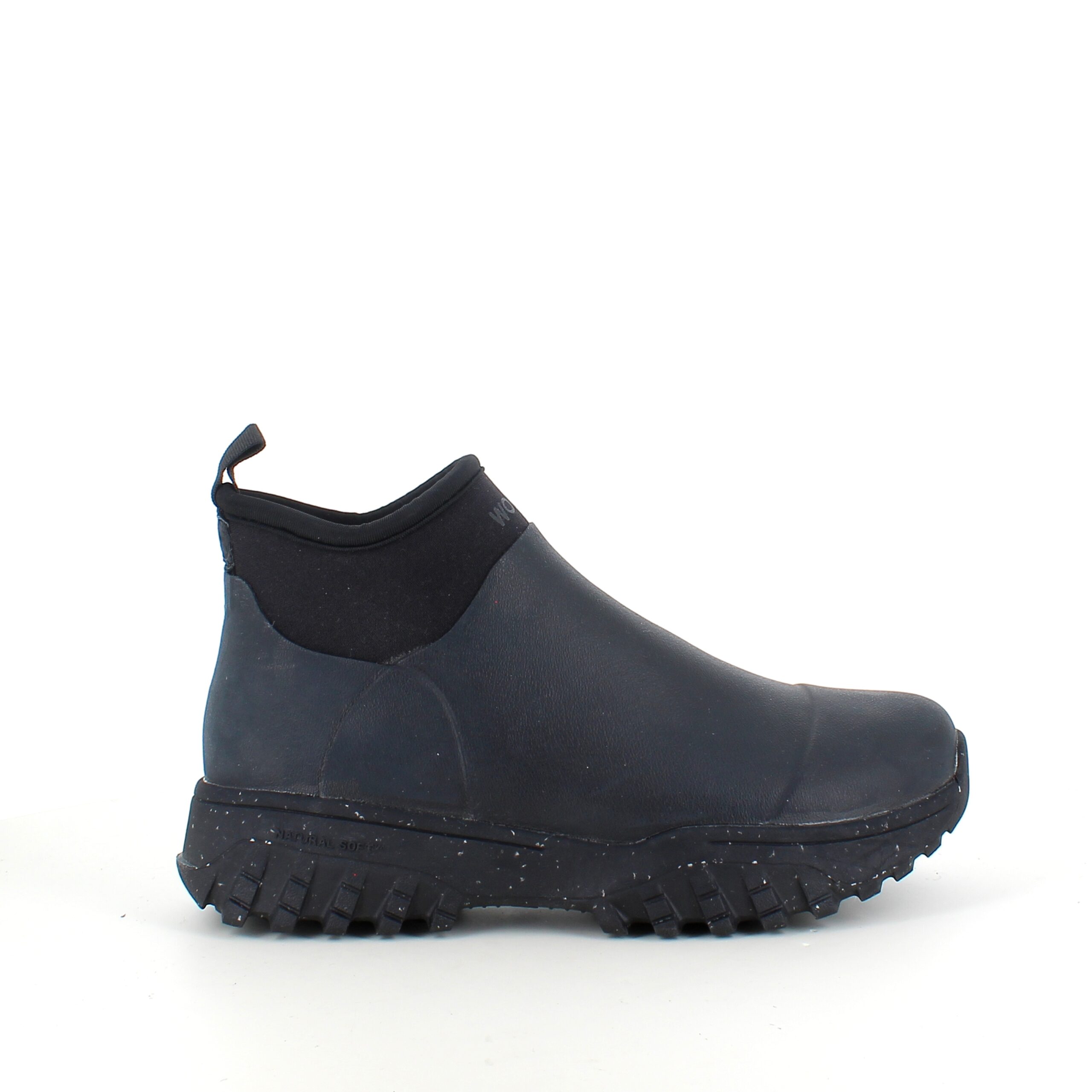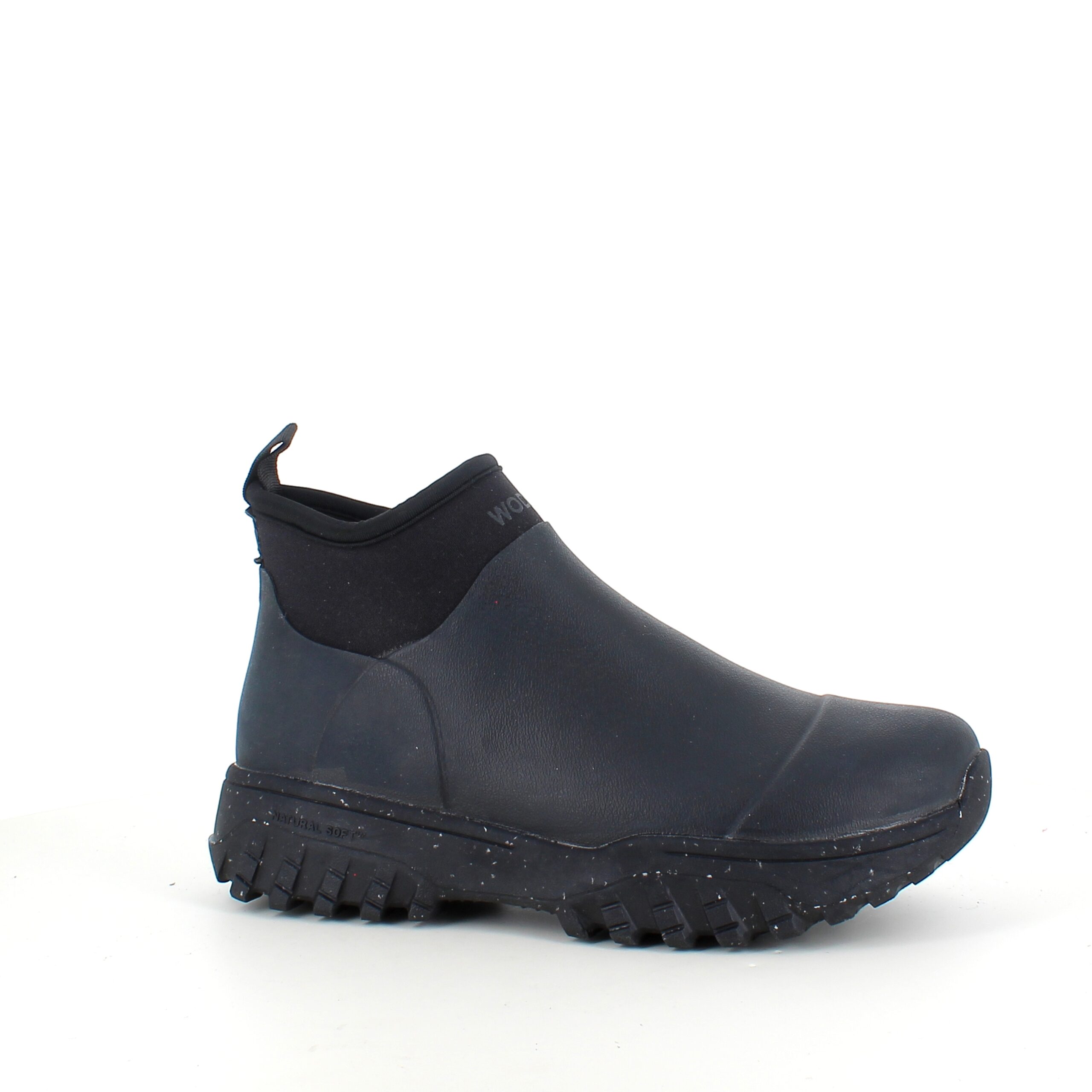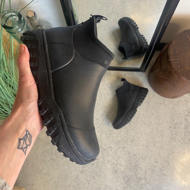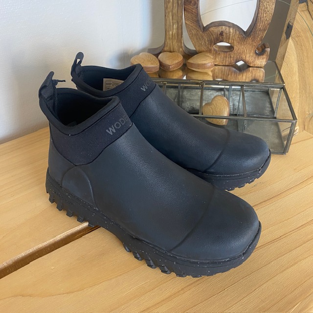 Kort sort gummistøvle fra Woden med svangstøtte og god stødabsorbering.
