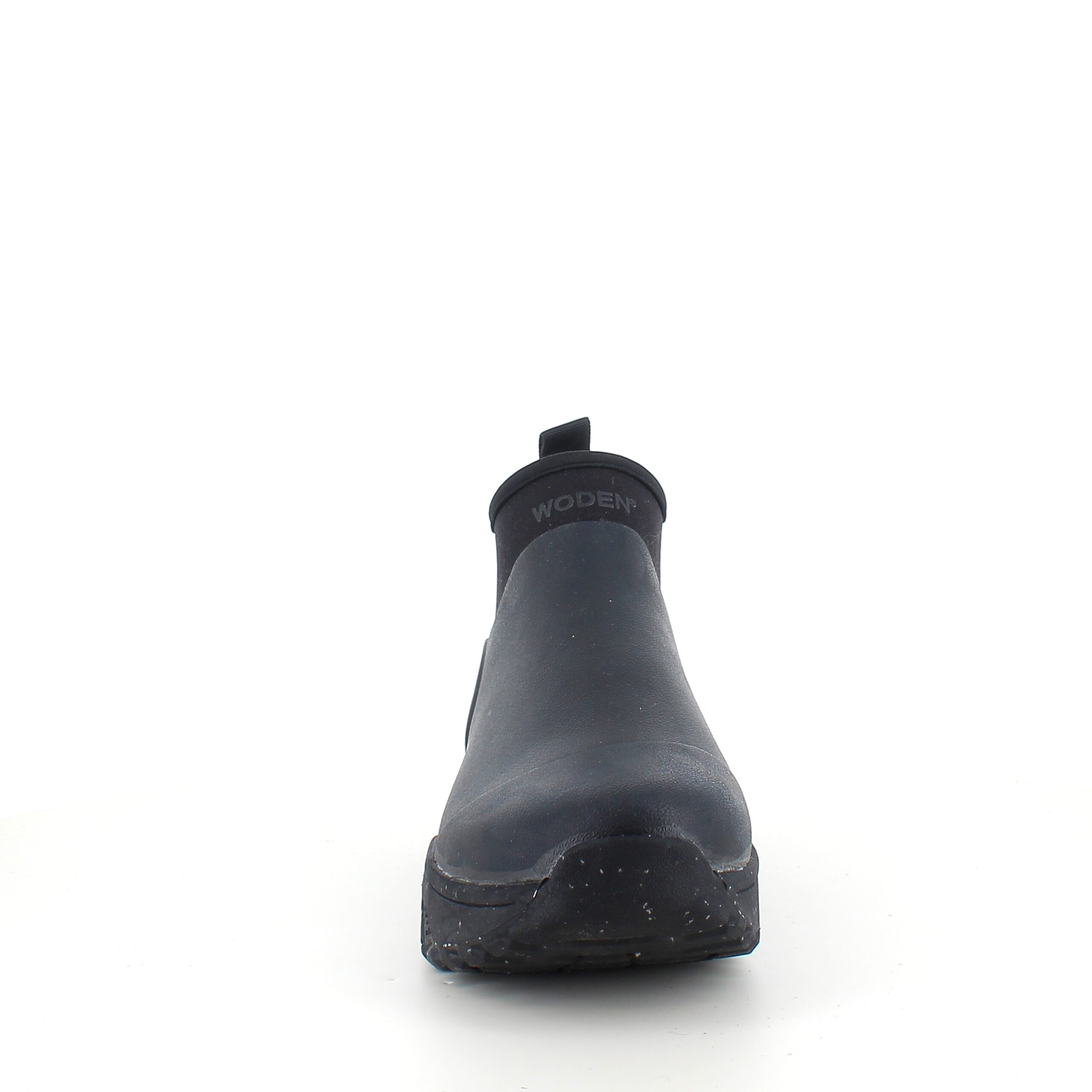 Kort sort gummistøvle fra Woden, som har en let pasform med høj komfort, designet til en aktiv og moderne livsstil.