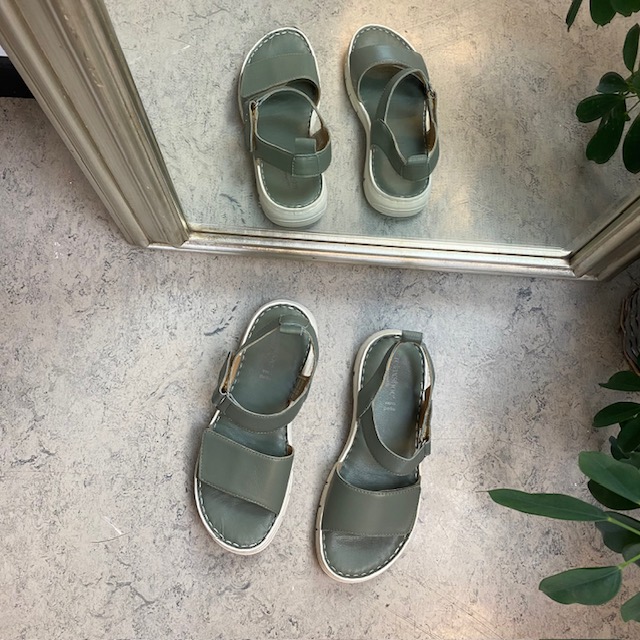 Skindsandal i flot glat, grønt skind.