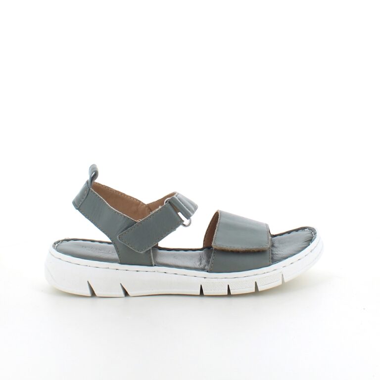 Sandalen har en bred velcro rem over forfoden og en lidt smallere ved anklen.