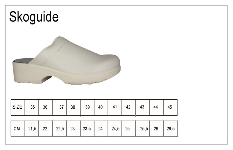 Træskoen anbefales til dig, som har brug for en træsko der er skridsikker og meget behagelig at have på.