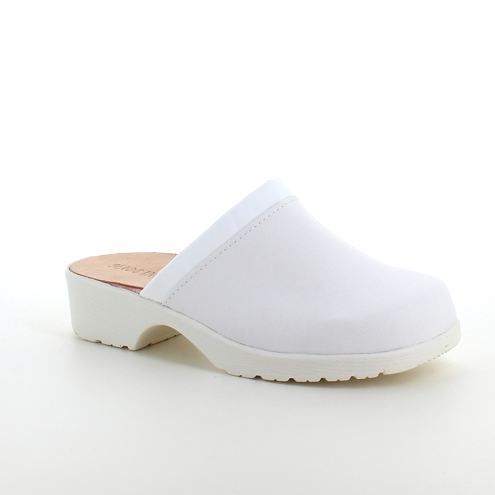 Træsko i hvid uden kap.