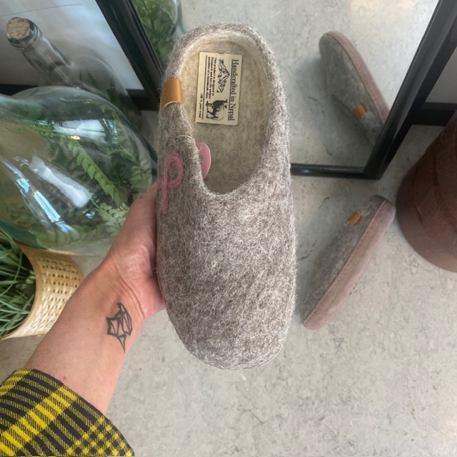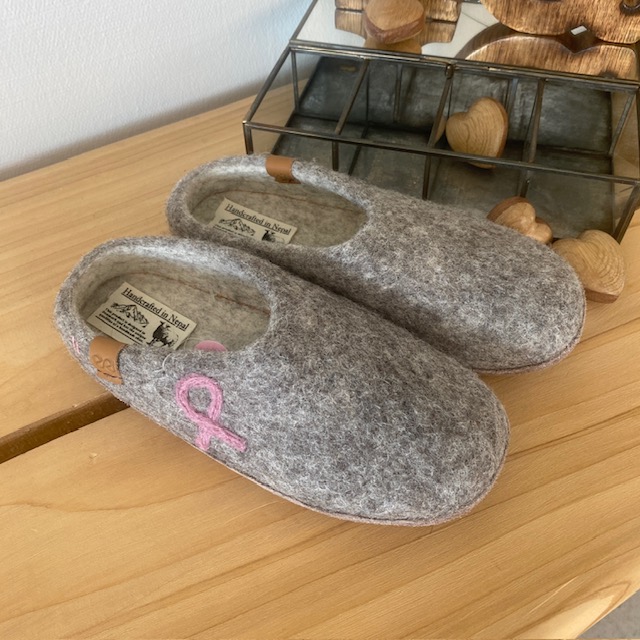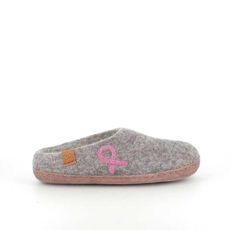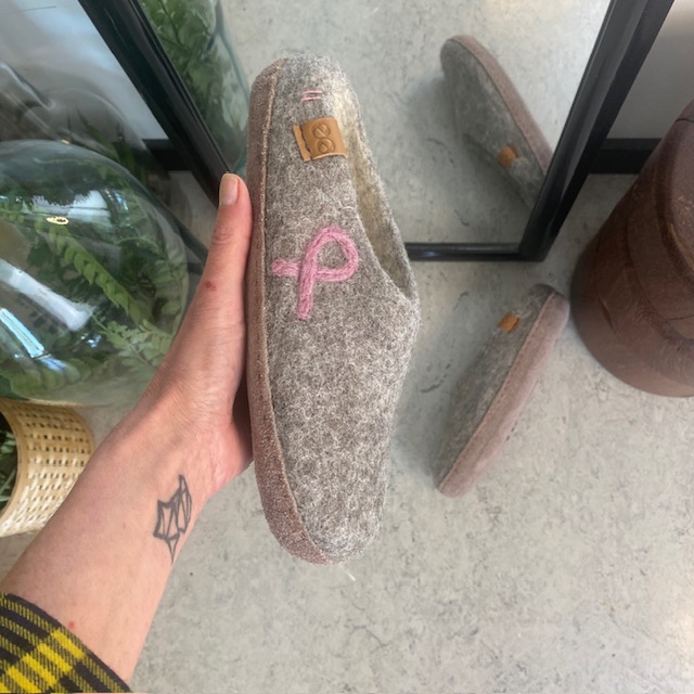 Oplev vores limited-edition uldhjemmesko, skabt i samarbejde med Støt Brysterne og Green Comfort, hvor hver eneste sko er håndbroderet med den velkendte lyserøde sløjfe på højre yderside. Når du køber et par uldhjemmesko fra denne kollektion, går 50 kr. direkte til Støt Brysterne, så du tager små skridt med stor betydning.