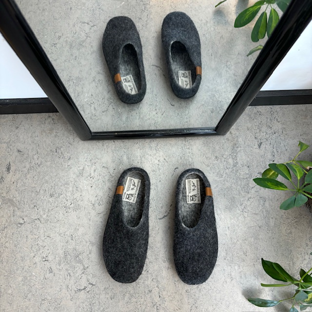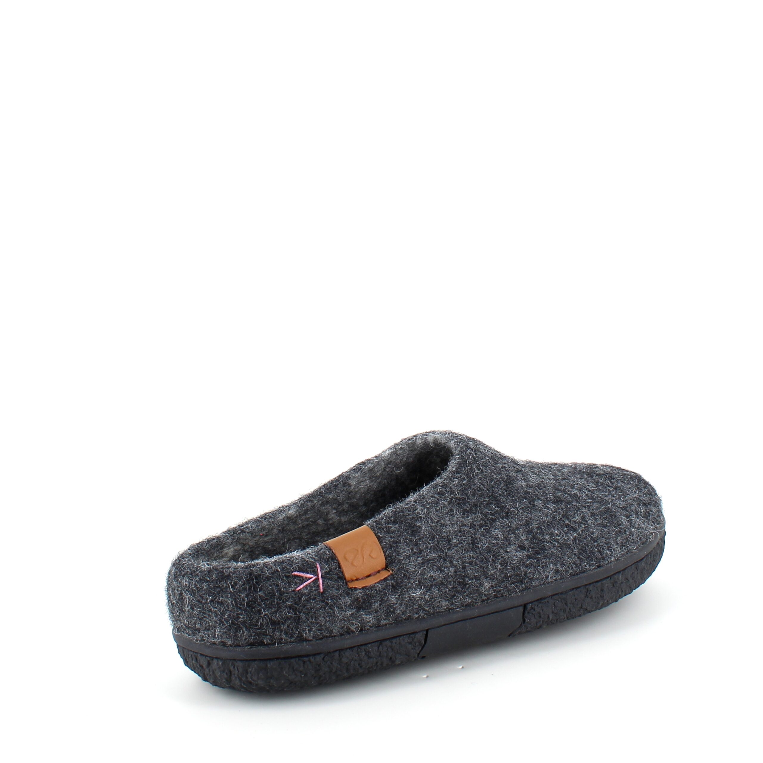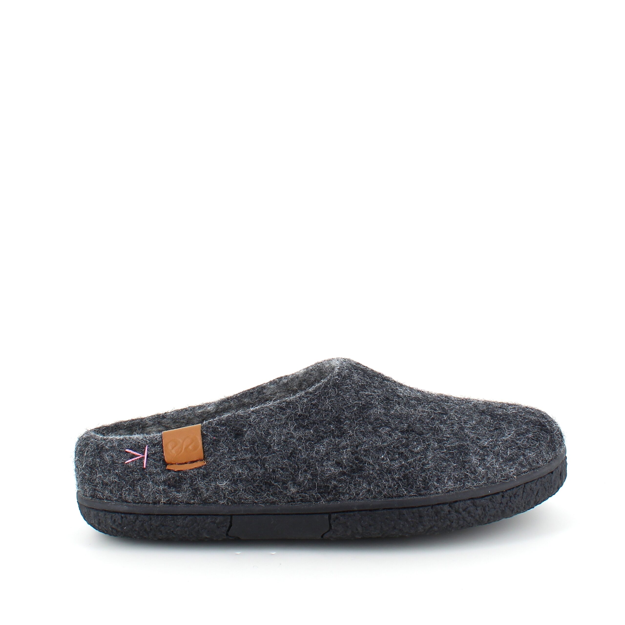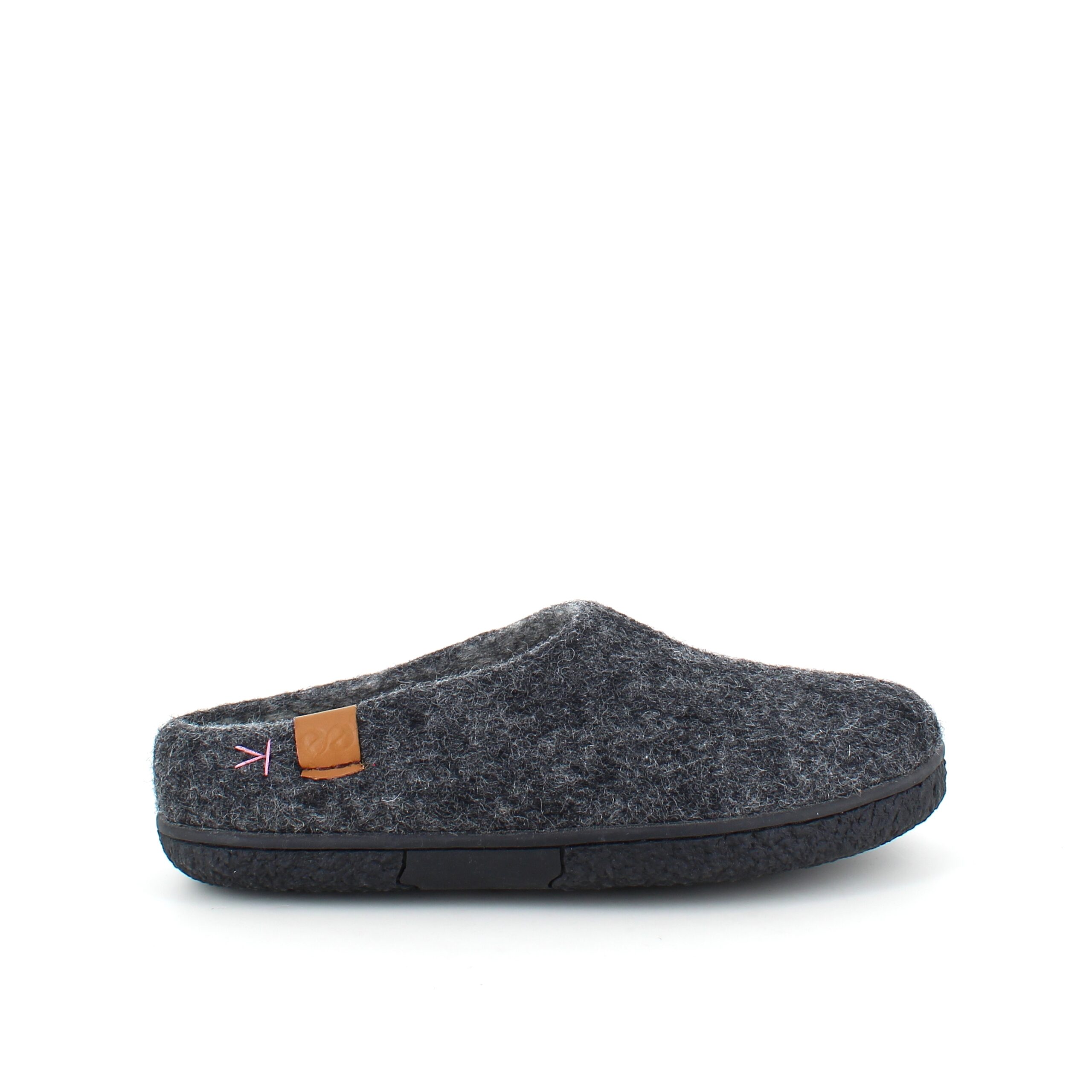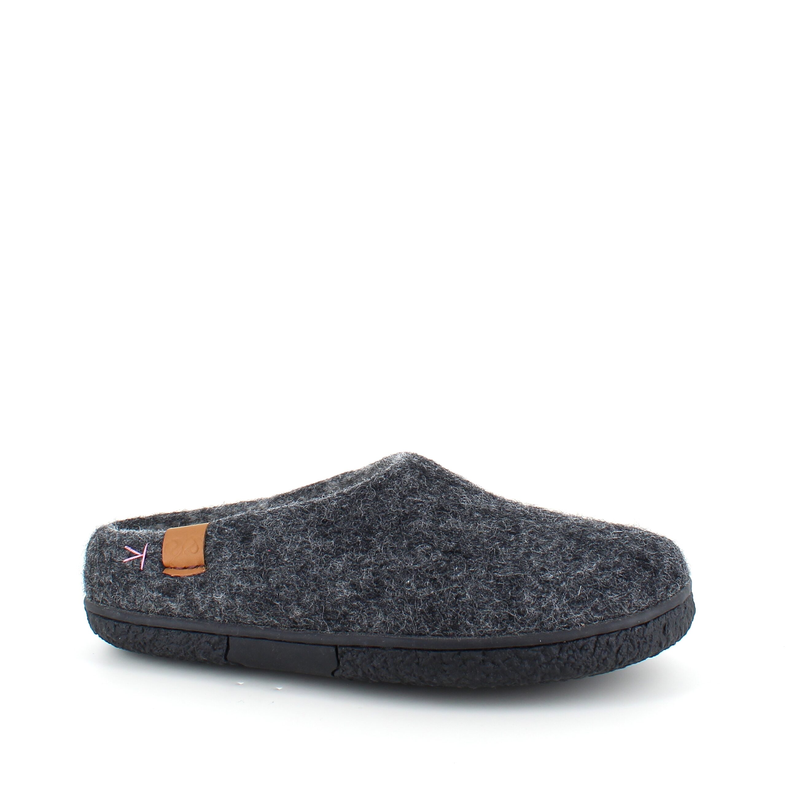 Lav mørk grå hjemmesko i uld med skridhæmmende såler fra Green Comfort