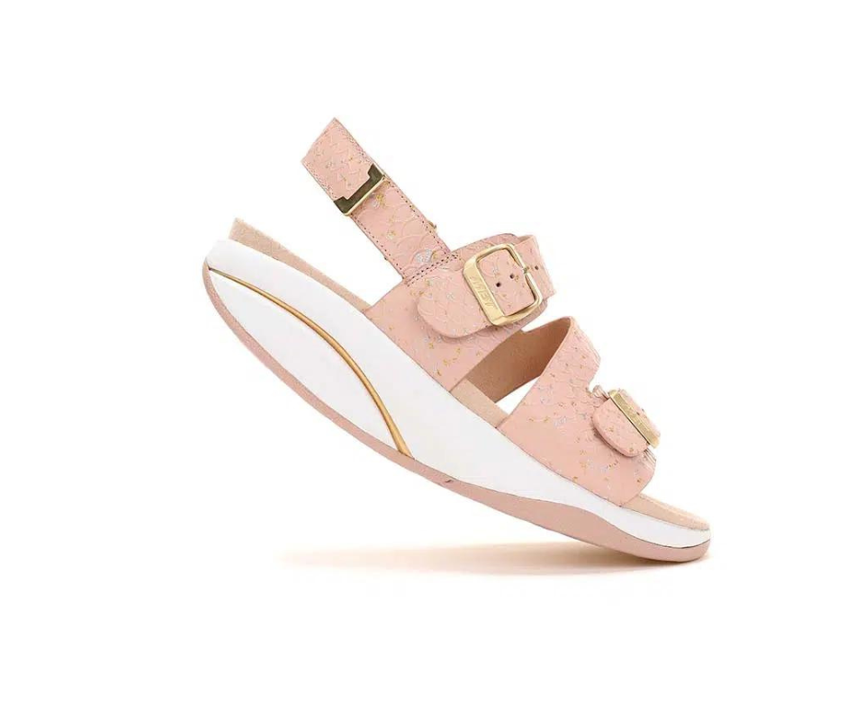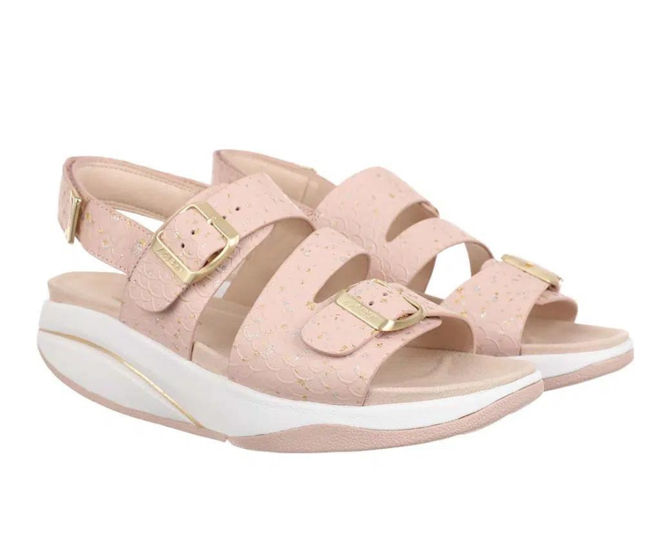 Giv dine fødder det bedste af begge verdener med vores MBT-sandal Lena Pink. Denne sandal er ikke kun et friskt pust med sit lyserøde design og subtile glimmer, men den giver også uovertruffen komfort, så du ikke behøver at gå på kompromis med stil eller velvære.
