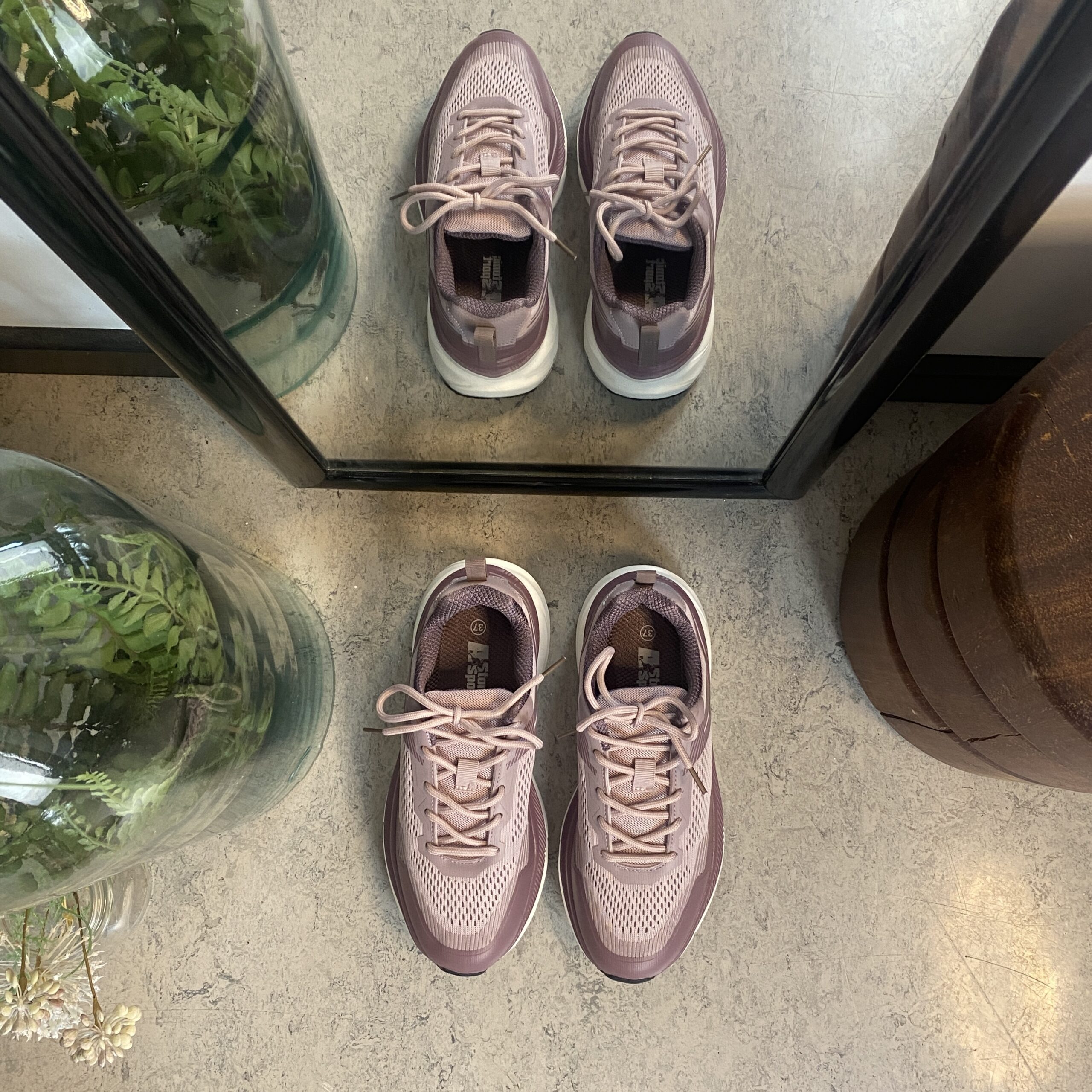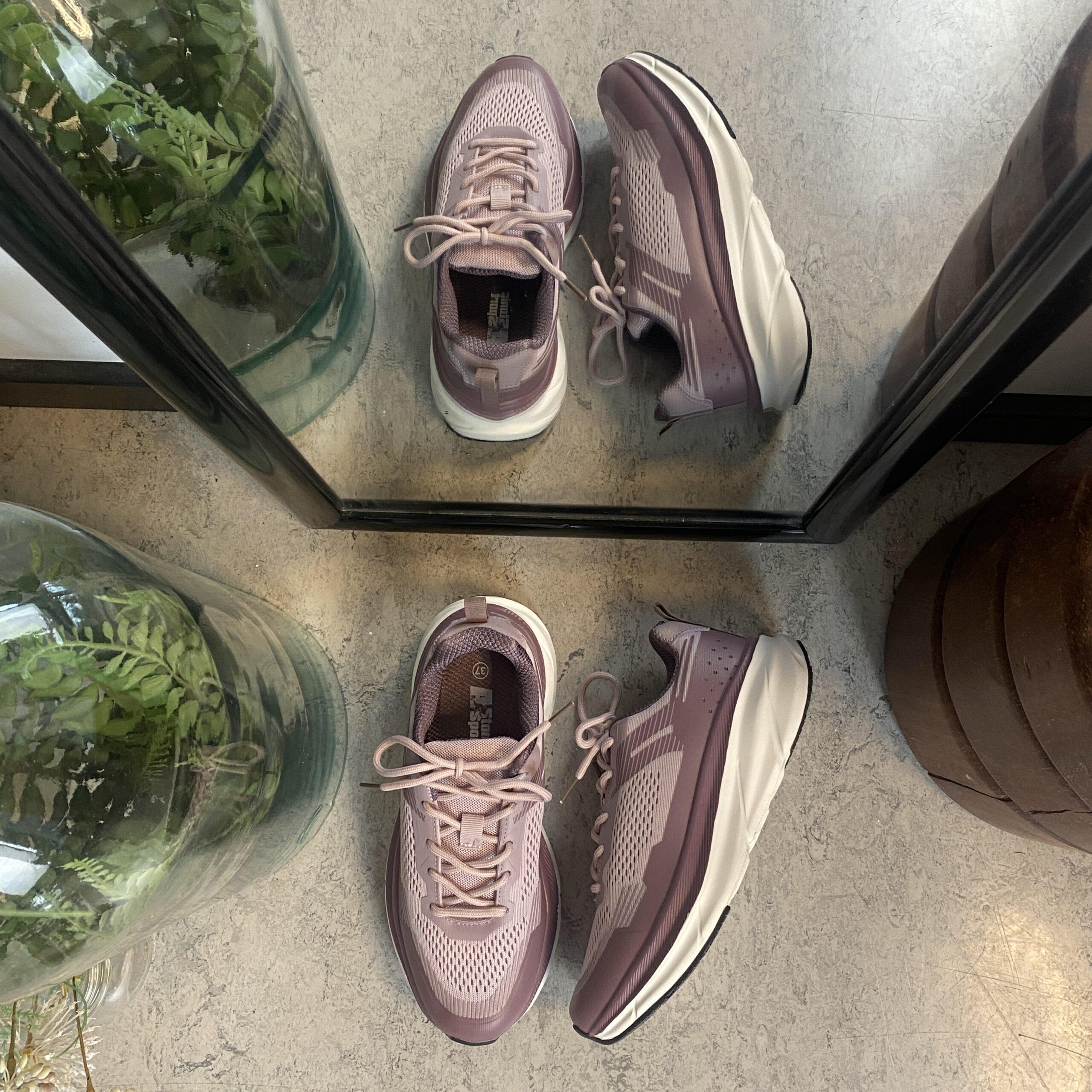 Sko med overdel i åndbart lilla mesh, der holder fødderne kølige og komfortable hele dagen.