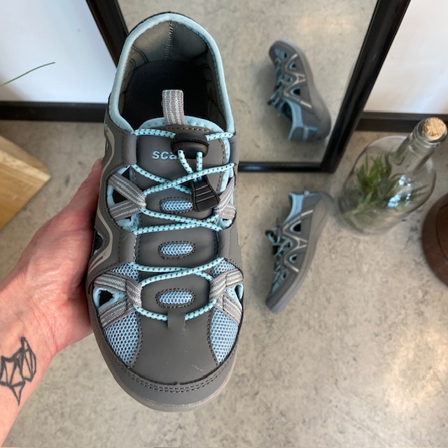 Elastiksnøre med lås – gør det nemt og hurtigt at justere pasformen, så sandalen sidder godt hele dagen.