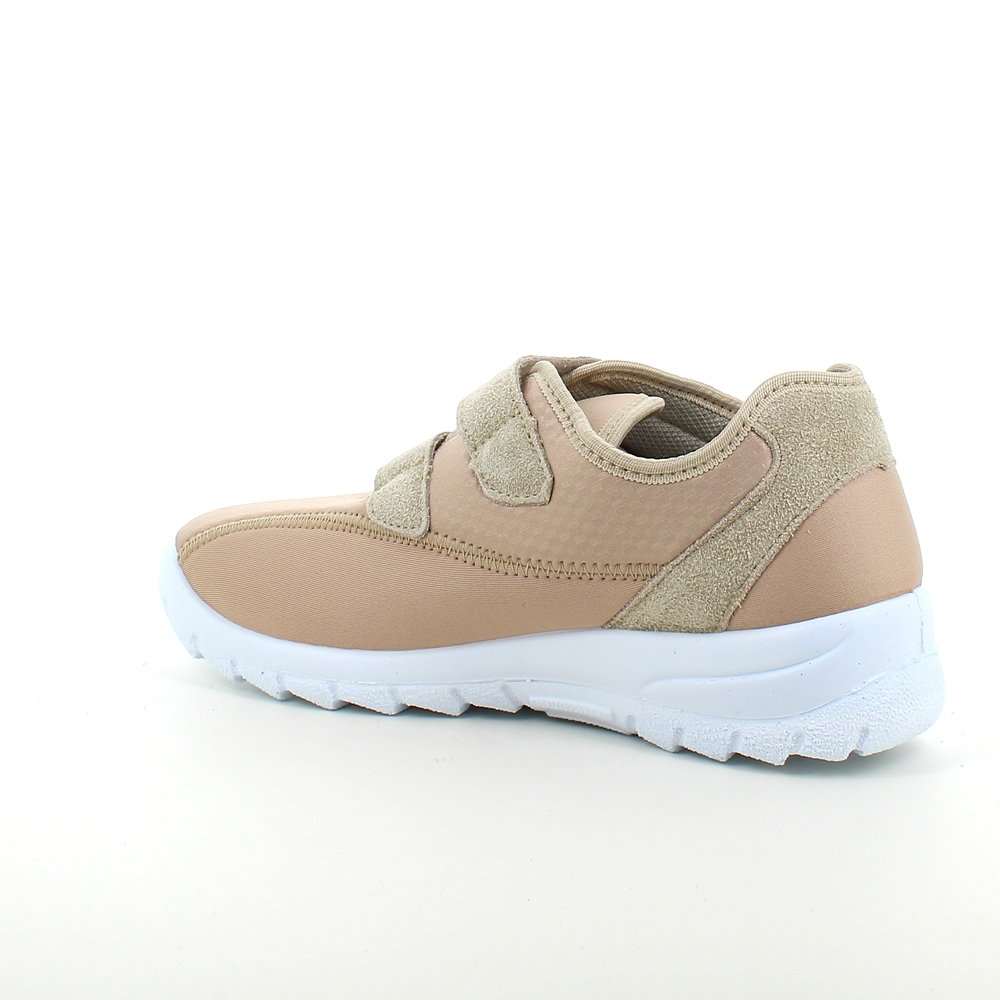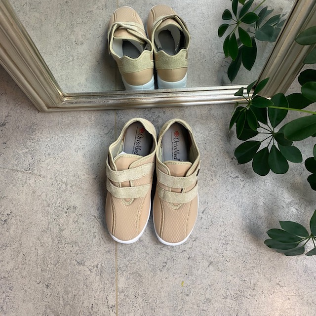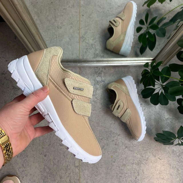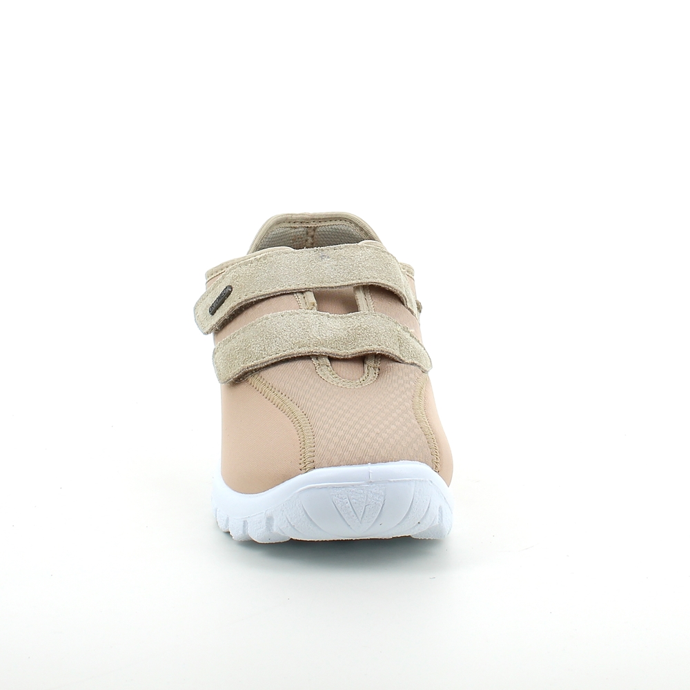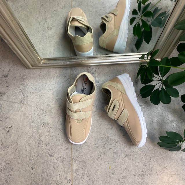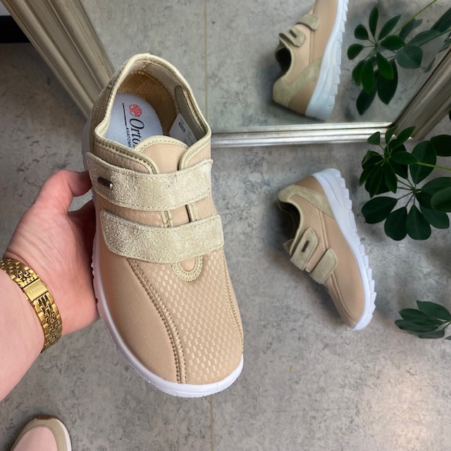 Sko i lys beige med skind detaljer og en meget bred pasform.