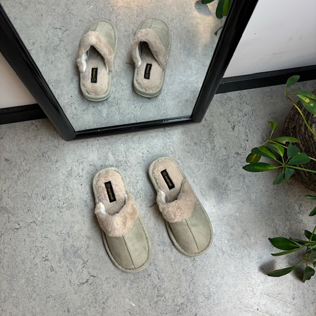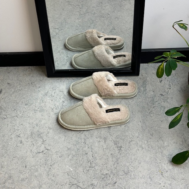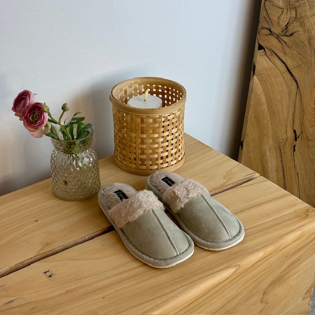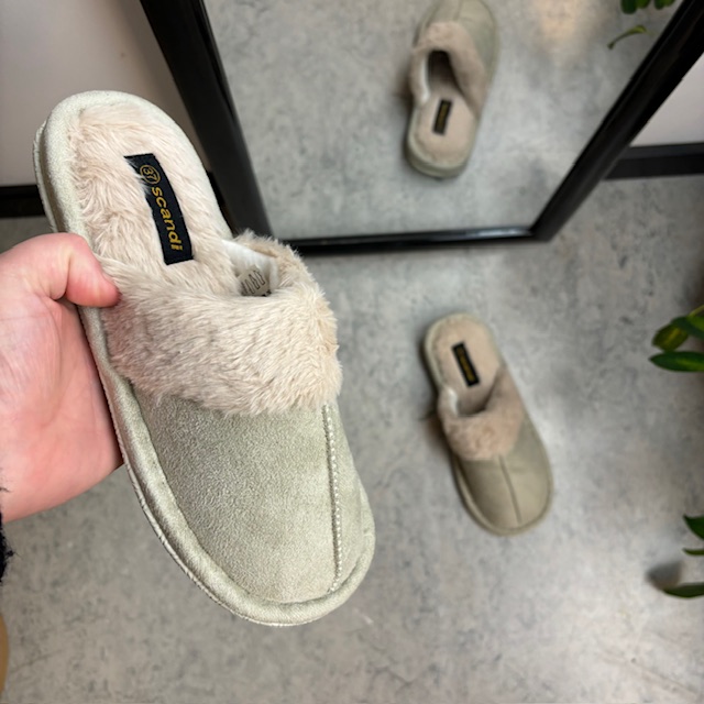 Lys grøn Slip In sutsko med blødt syntetisk pels.