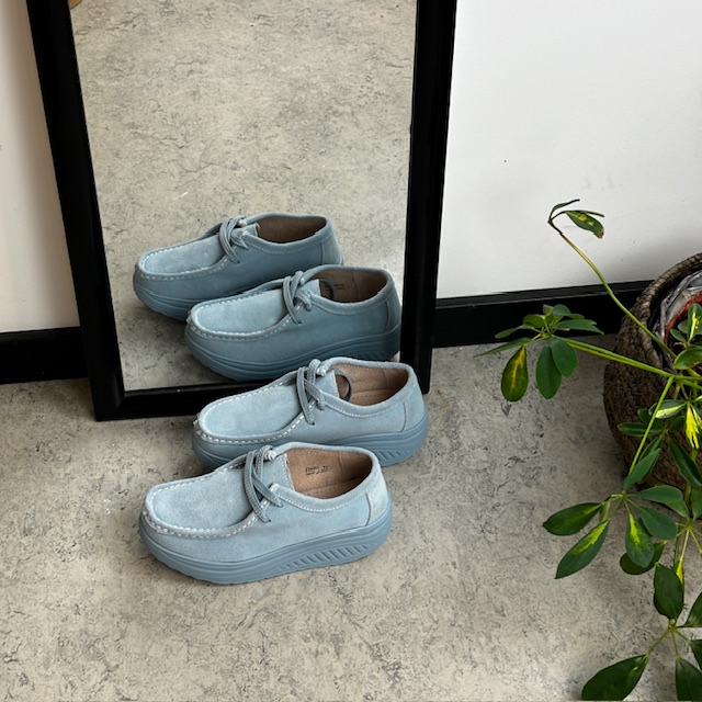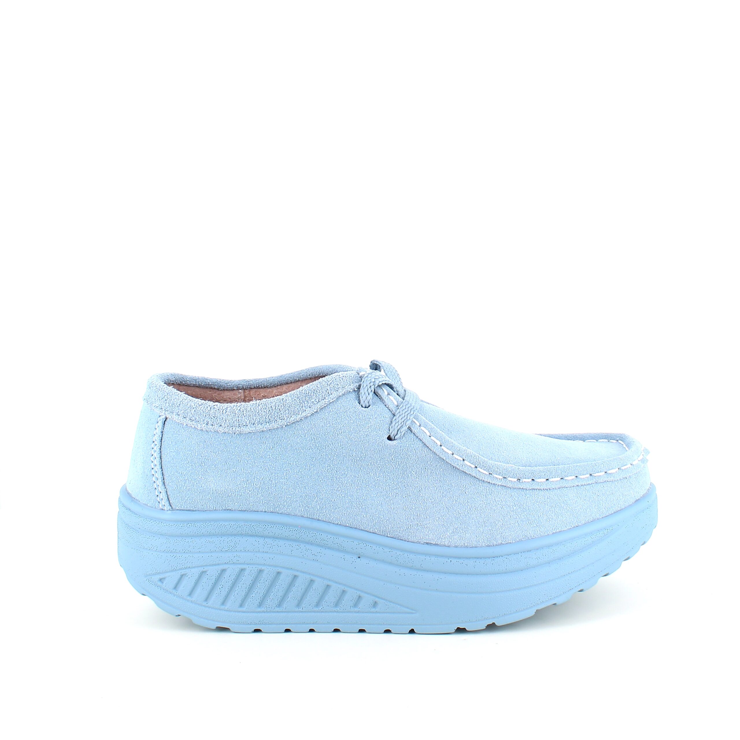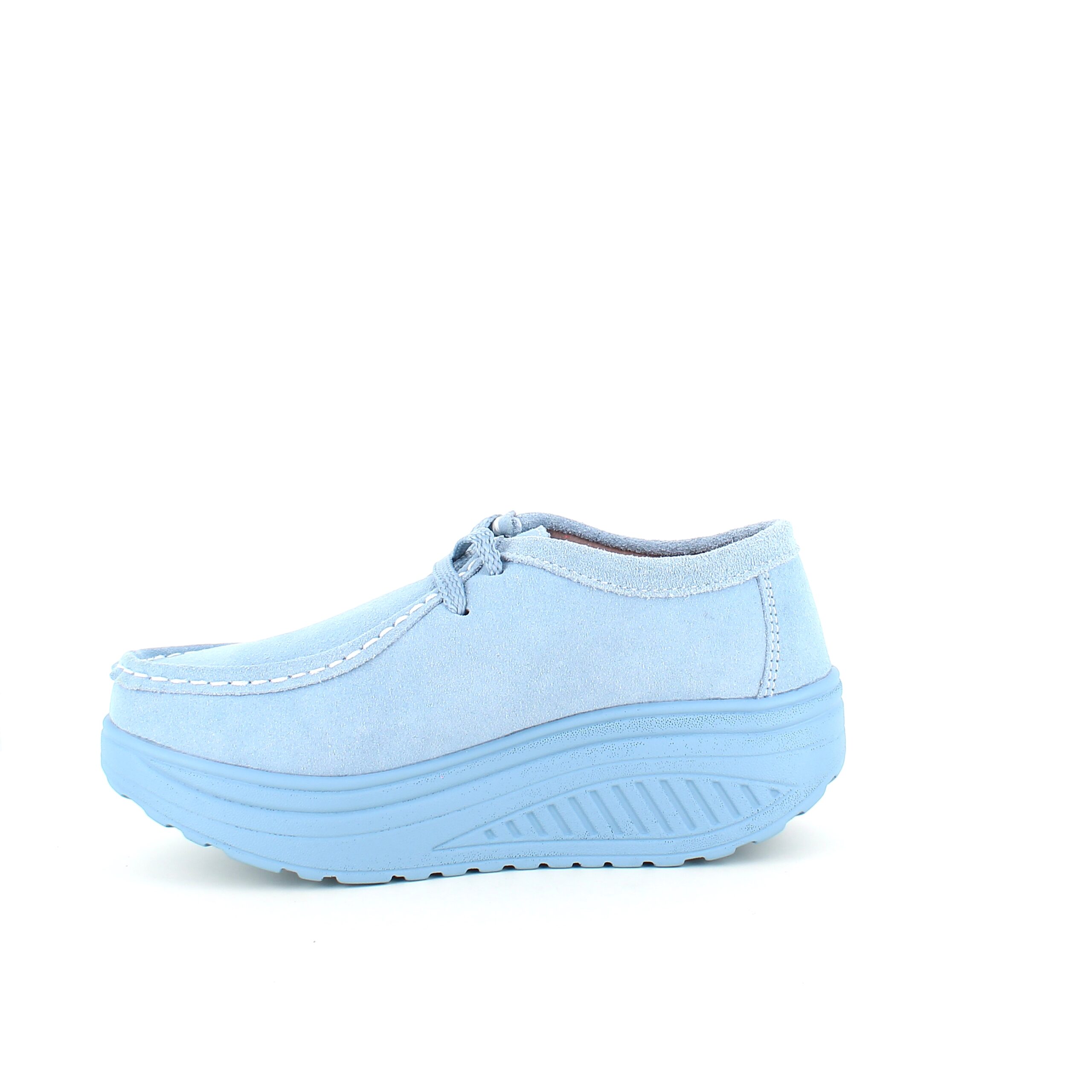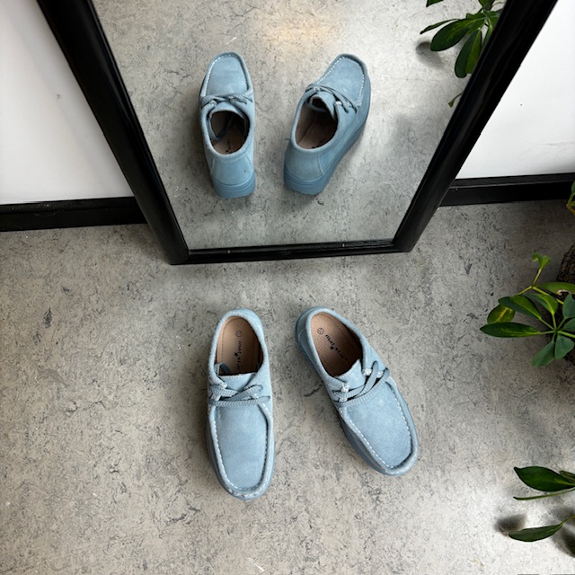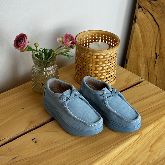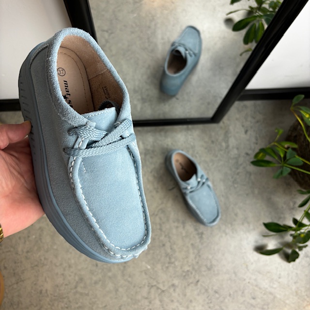 Lyseblå ruskindssko med gængesål og svangstøtte