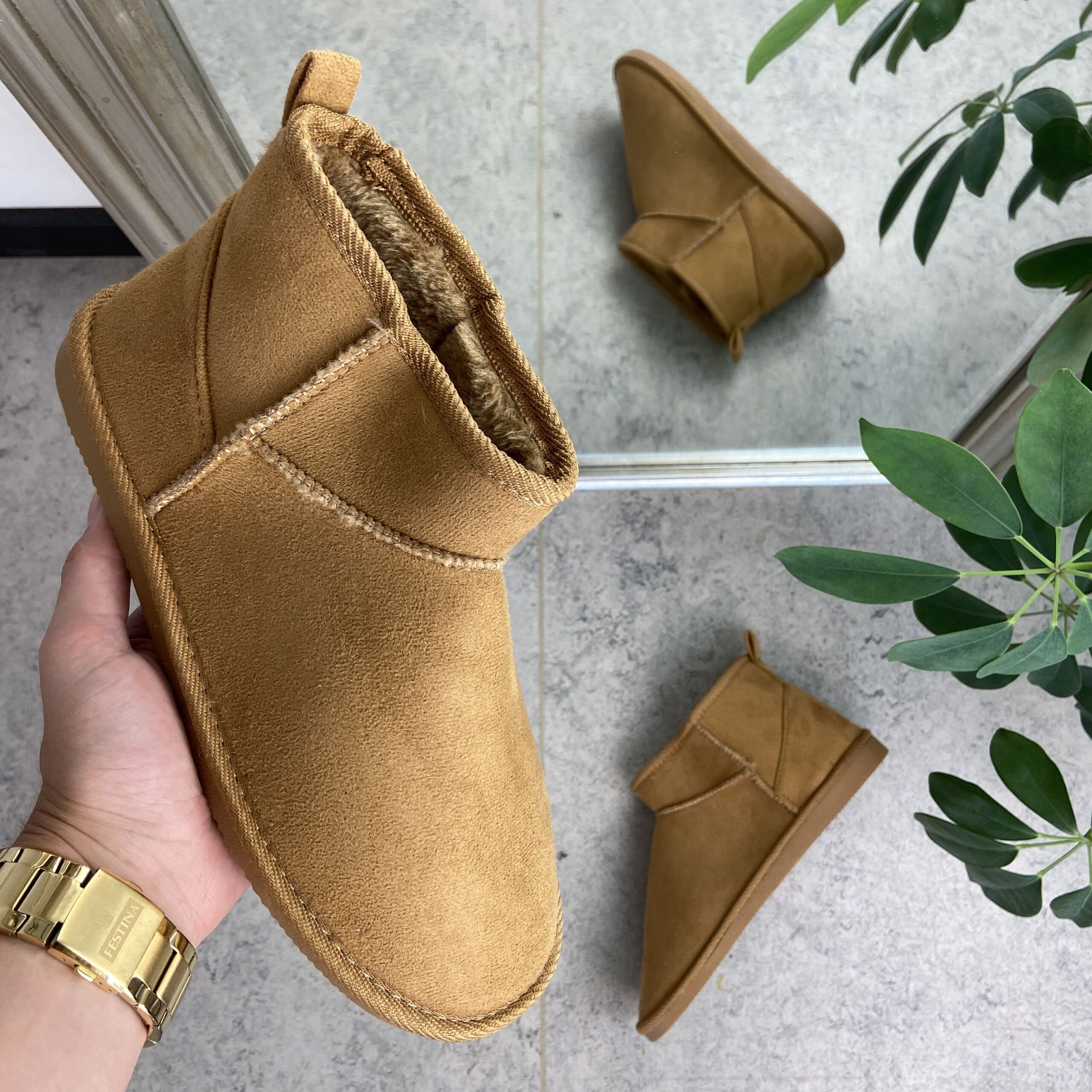 Lysebrun bamsestøvle med blødt foer og kort skaft