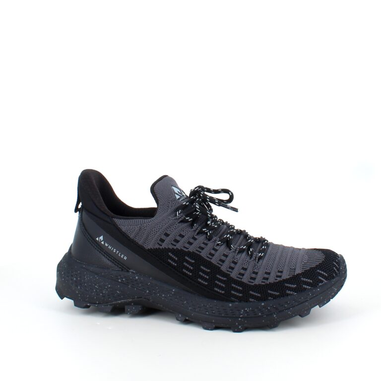 Disse slip-on sko fra Whistler har en åndbar, strikket overdel i grå og sort. De har dekorative snørebånd foran og ekstra polstring ved hælen. Den aftagelige skum indersål giver let svangstøtte, mens den bløde mellemsål sikrer god dæmpning. Den fleksible ydersål har et robust mønster for godt greb. Fås i størrelserne 37-42 og findes også i en rosa/lilla farvekombination