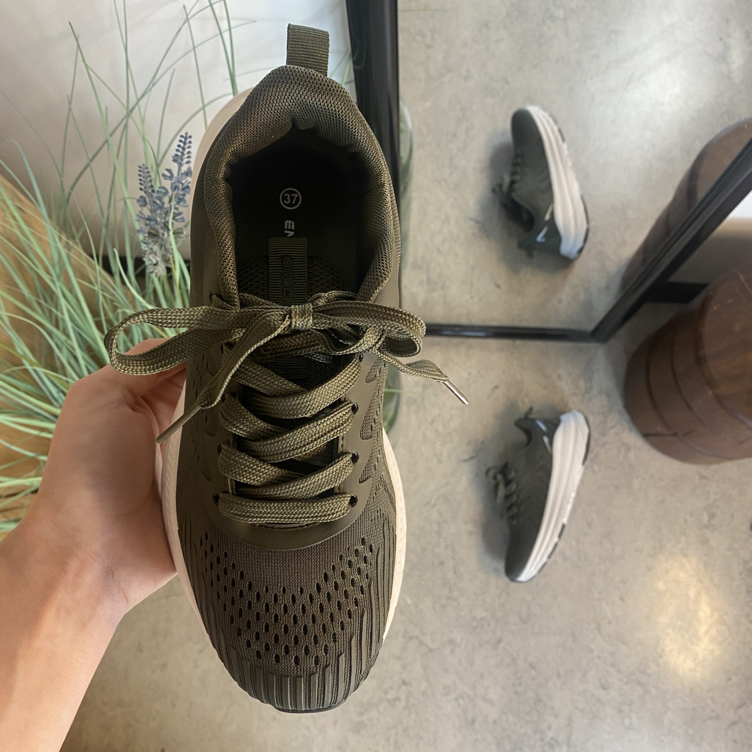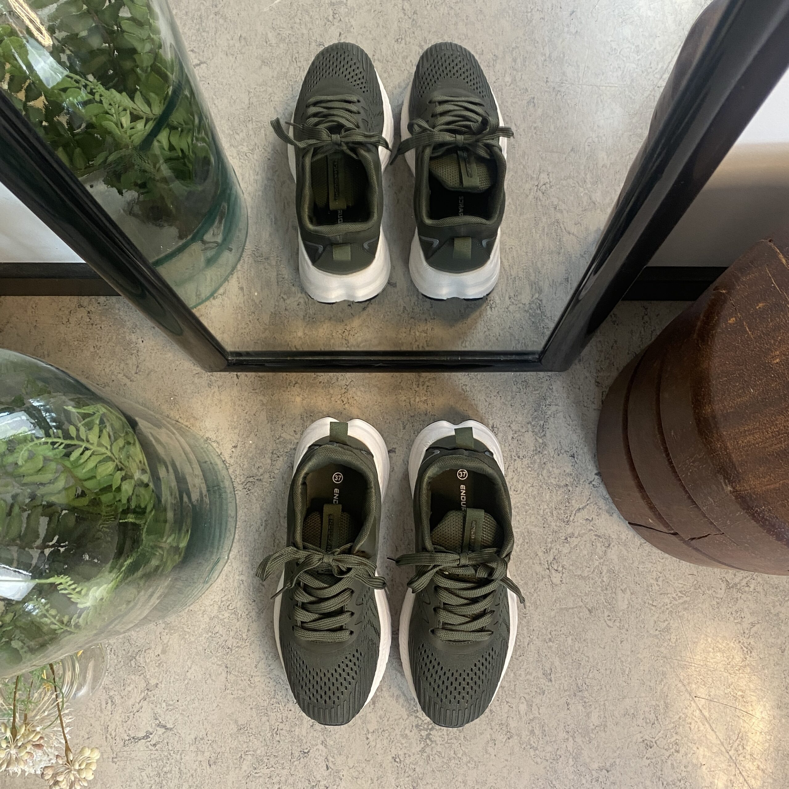 Mørkegrøn åndbar sko fra Endurance med effektiv stødabsorbering