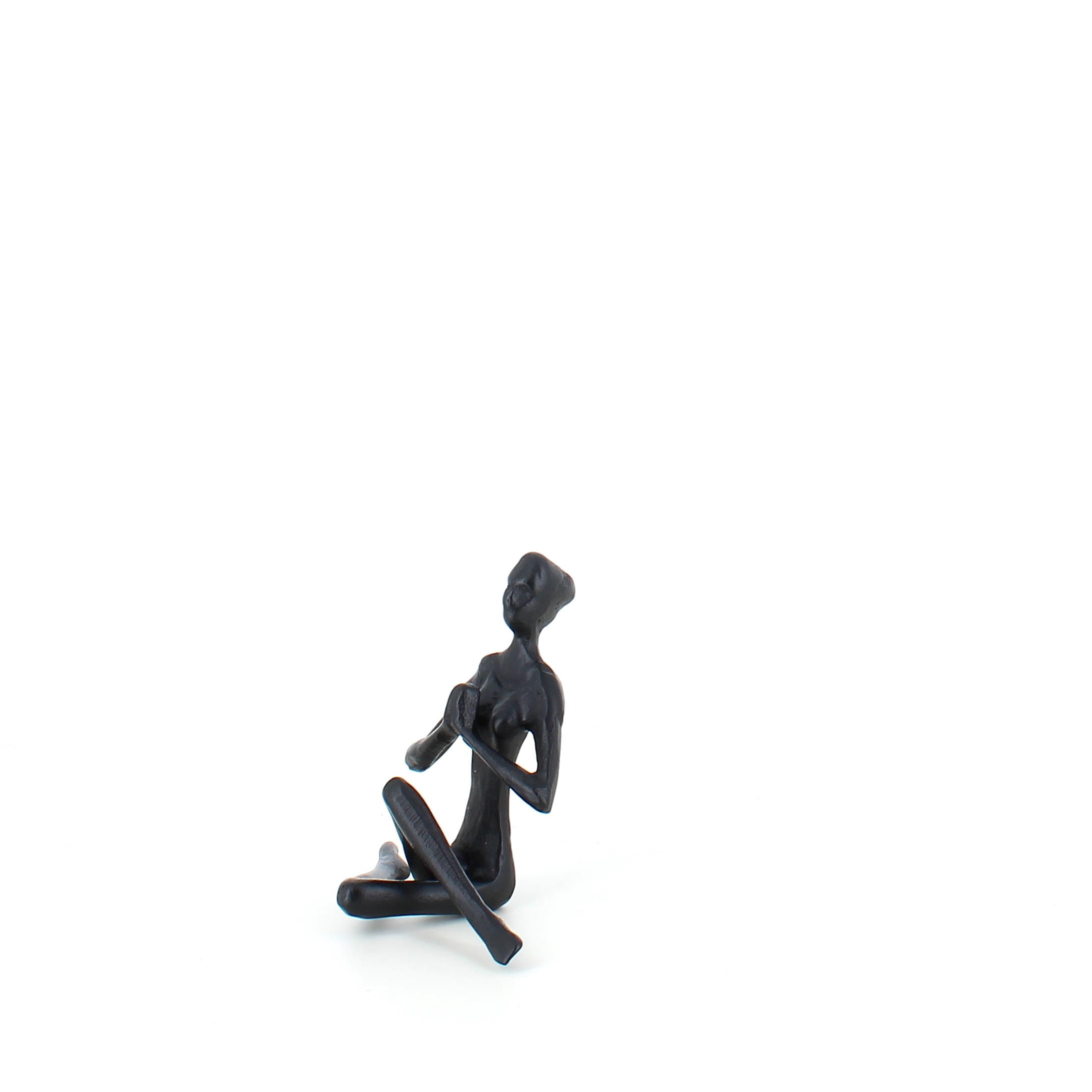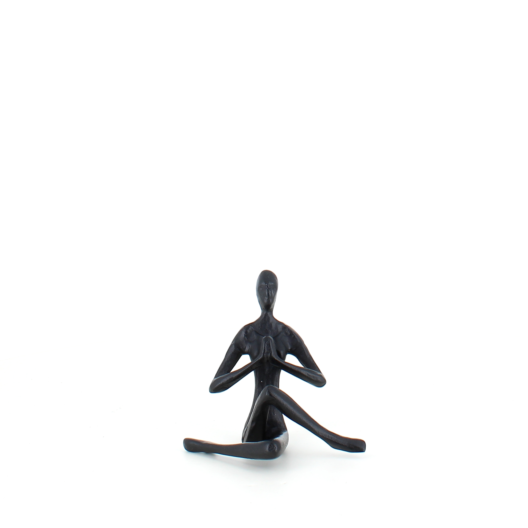 Denne smukke skulptur i mat sort metal udstråler en dyb følelse af indre ro og balance. Figuren sidder i en meditativ stilling med hænderne samlet foran brystet i en klassisk yoga- eller meditationspositur, hvilket symboliserer indre fred og åndelig balance. Det minimalistiske design giver skulpturen en moderne æstetik, som gør den velegnet til enhver indretning, hvor du ønsker at skabe en atmosfære af ro og refleksion.
