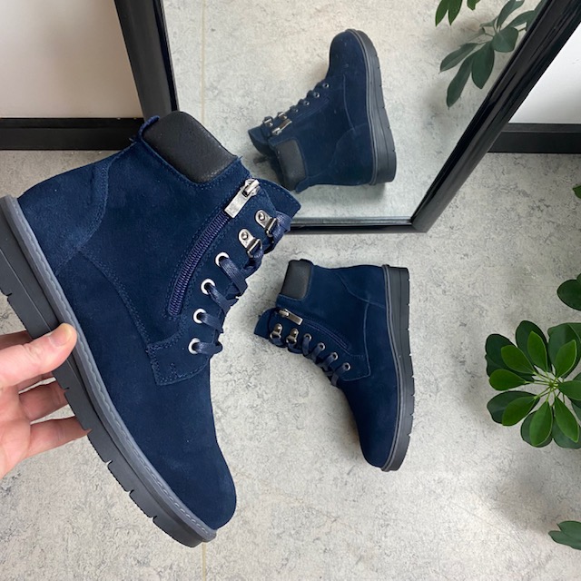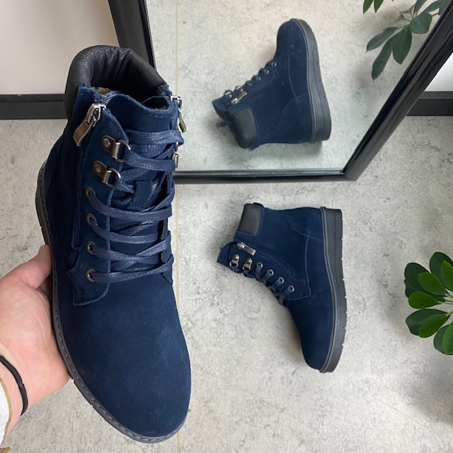 Navy skindstøvle med lynlås i begge sider