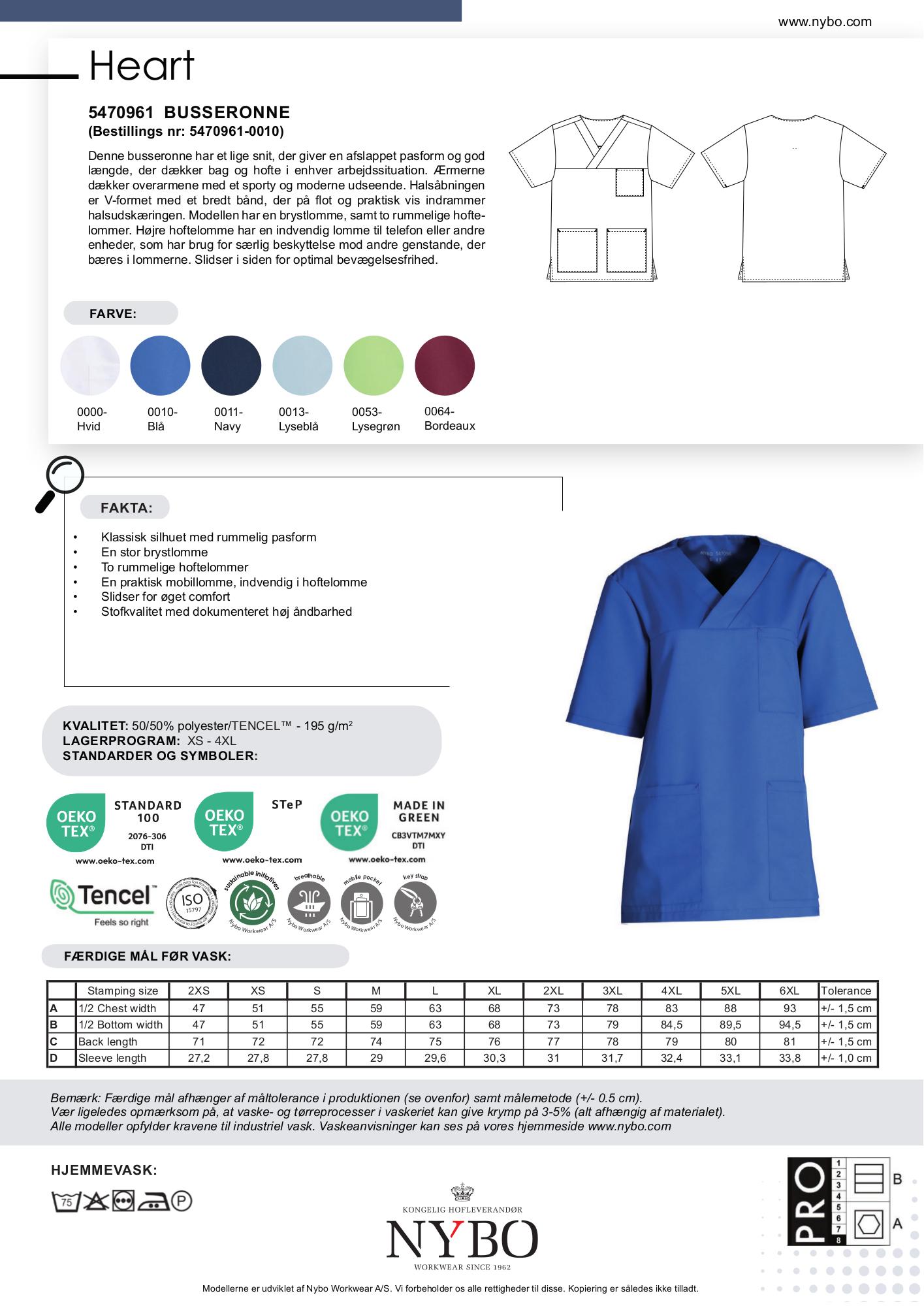 HEART kollektionen er kendt for sine klassiske og praktiske designs, der bringer farve ind i arbejdstøjet. Med behagelige og flatterende snit samt funktionelle detaljer fokuserer kollektionen på at levere en fremragende pasform og stor funktionalitet. Det slidstærke stof indeholder temperaturregulerende TENCEL®, som er permanent modstandsdygtig over for bakterier, hvilket minimerer svedlugt og sikrer høj åndbarhed. Dette gør tøjet ideelt til alle årstider og særdeles velegnet til sundhedsvæsenet, plejesektoren og serviceerhverv.