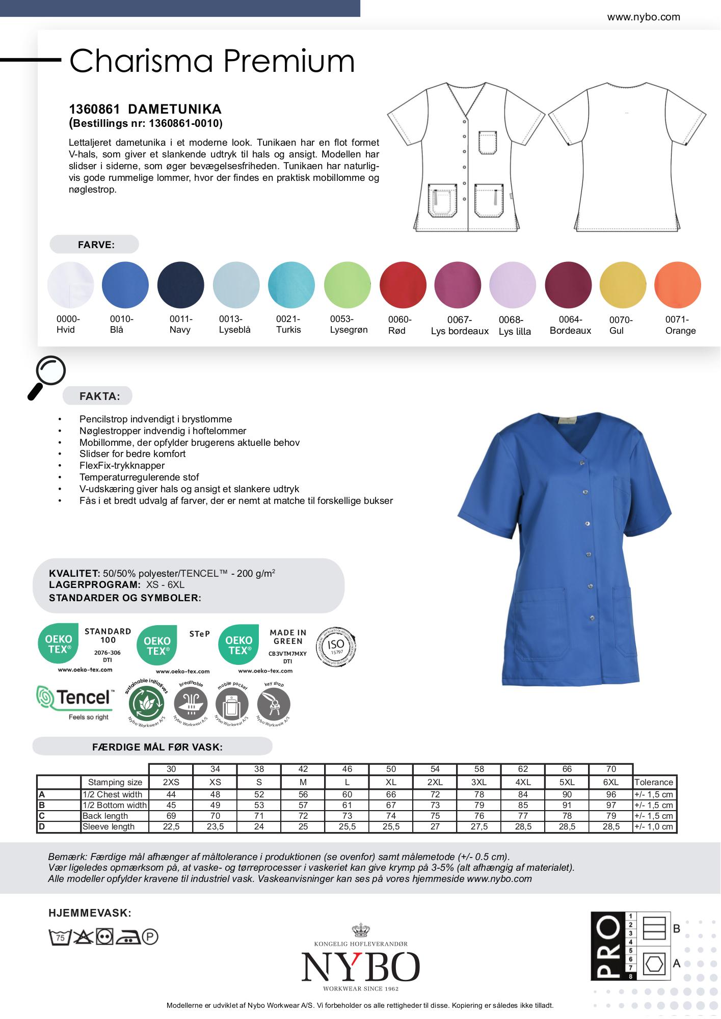 Nybo Blå Dametunika Charisma Premium, Komfortabel, Slidstærk, Temperaturregulerende