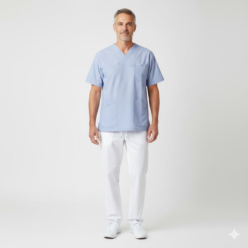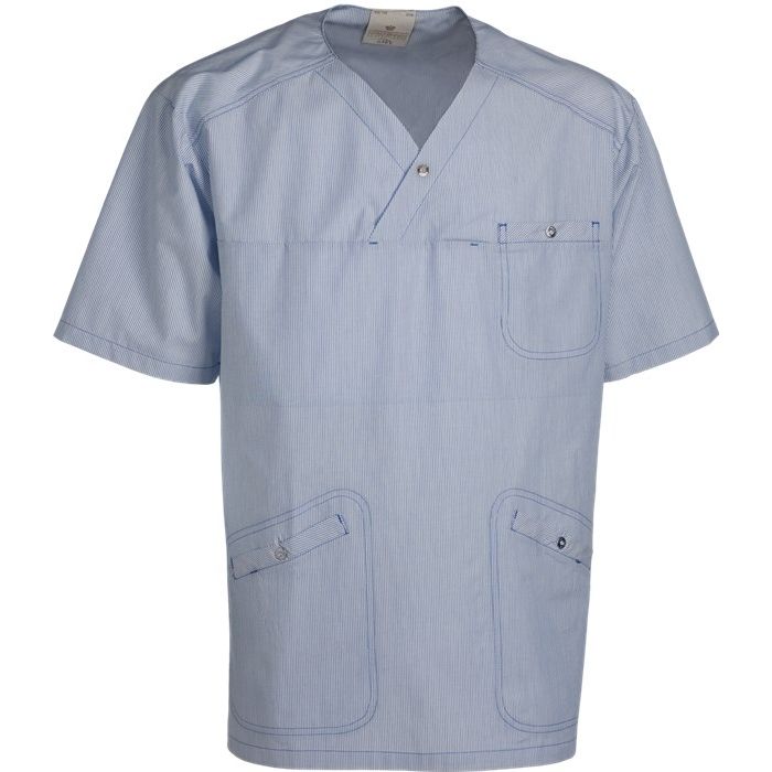 Denne unisex busseronne fra Nybo Workwear er perfekt til både mænd og kvinder, der søger komfort og stil på arbejdspladsen. Den blåstribede busseronne er kendt for sin lige op og ned snit, som forbedrer bevægelsesfriheden, takket være de forstærkede slidser. Bagpå er der en justerbar elastik, der sikrer en perfekt pasform for enhver bruger. Praktiske og rummelige lommer med nøglestropper gør det nemt at holde styr på hverdagens småting.