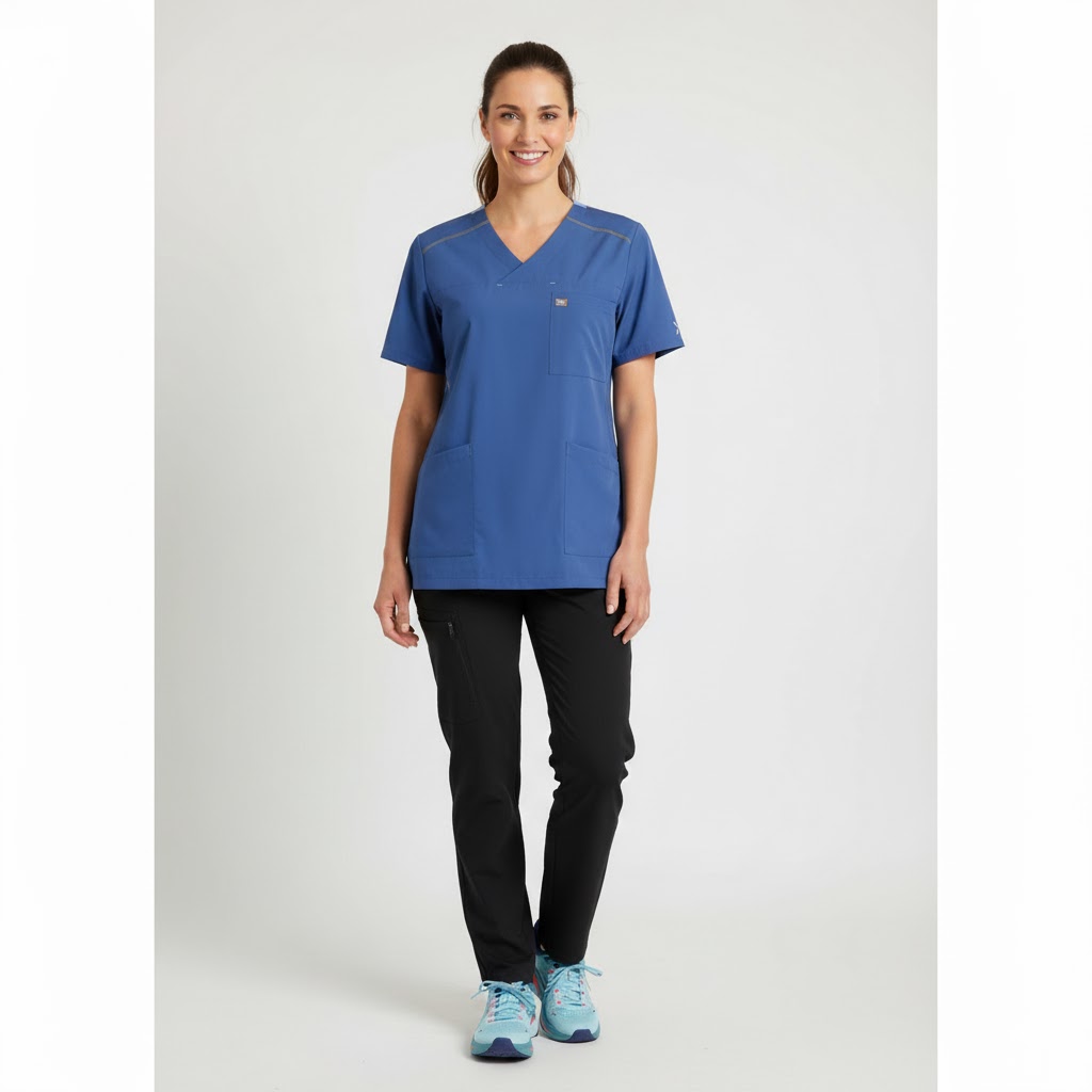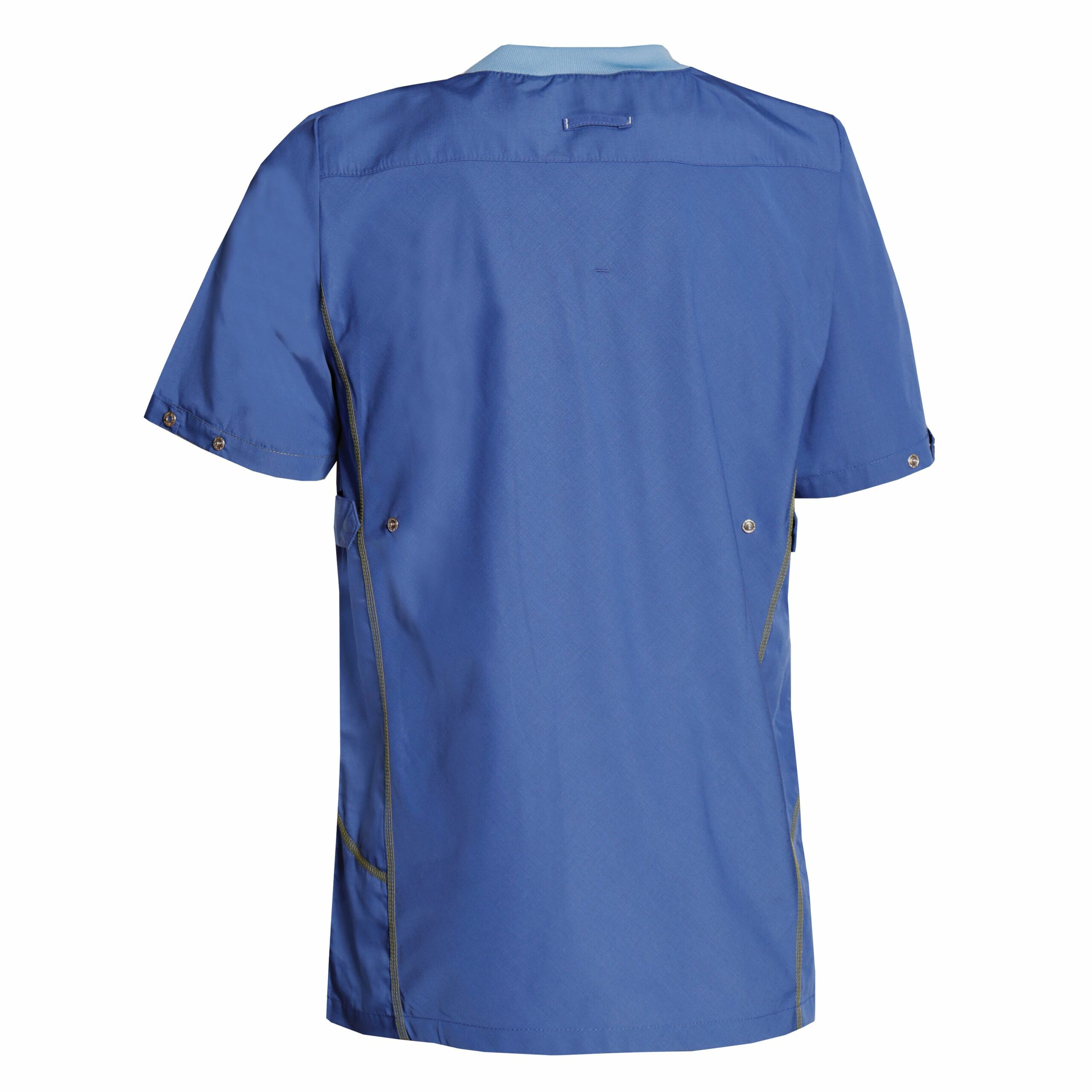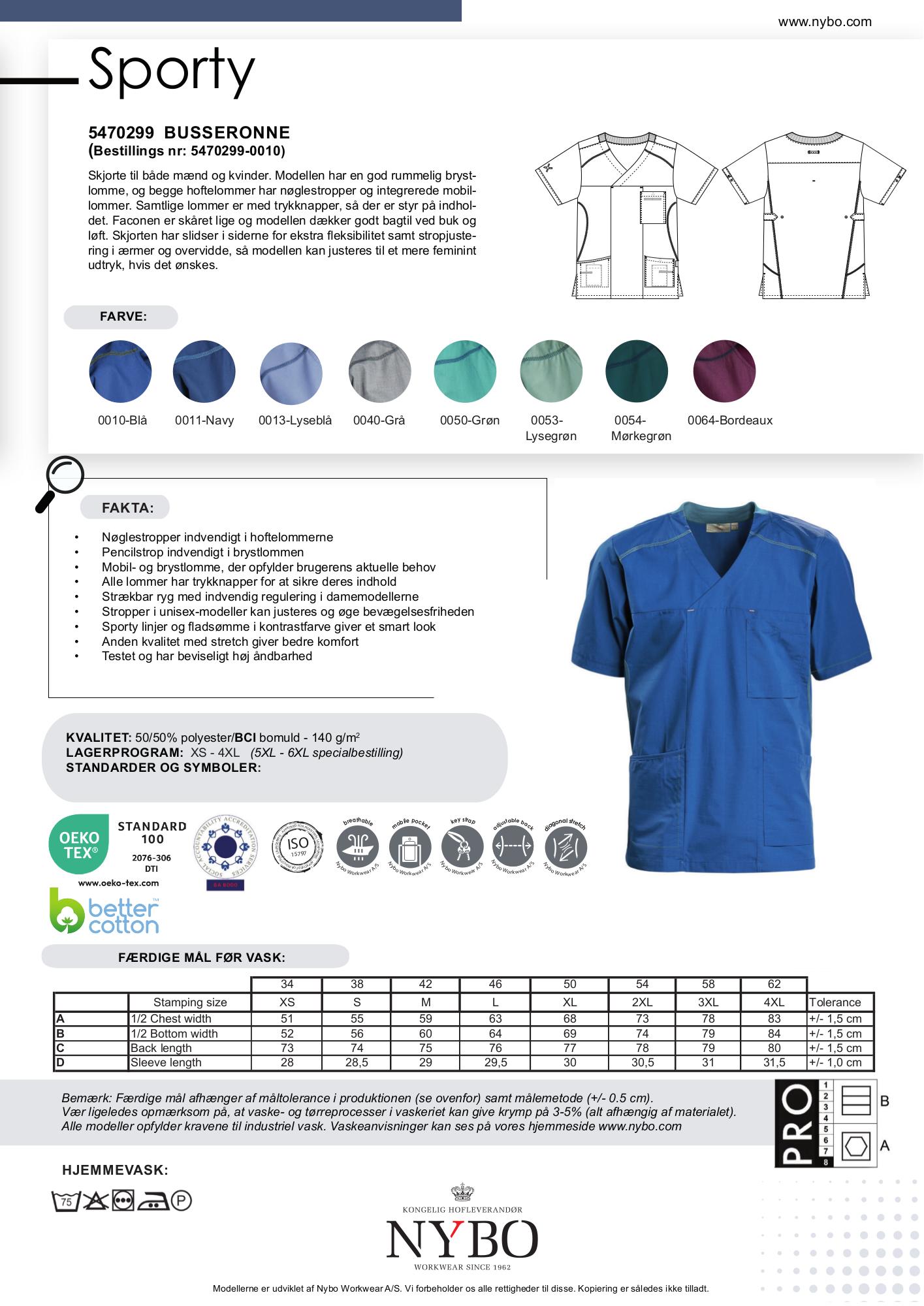 Den fleksible og slidstærke Nybo Blå Unisex Sporty Busseronne fra Nybo Workwear A/S er perfekt for både mænd og kvinder. Den praktiske busseronne har en rundet spri-hals og er udstyret med en rummelig brystlomme samt to hoftelommer med nøglestropper og integrerede mobillommer, alle med trykknapper for sikker opbevaring. Den lige facon dækker godt bagtil ved buk og løft, mens sideindsnittene tilføjer ekstra fleksibilitet. Ærmerne og overvidden kan justeres med stropper for at give en mere feminin pasform, hvis det ønskes.