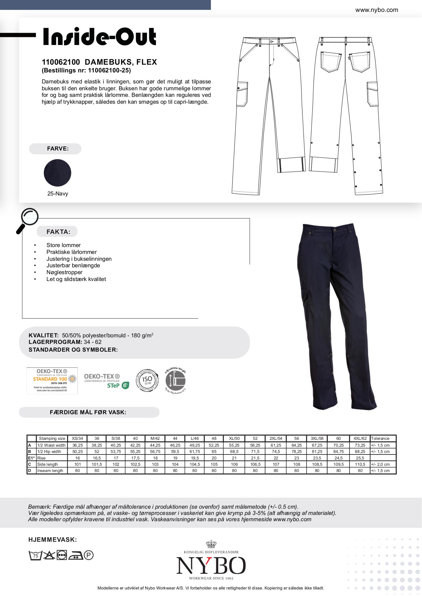 Tilgængelige størrelser: XS/34, 36, S/38, 40, M/42, 44, L/46, 48, XL/50, 52, 2XL/54, 56, 3XL/58. Merpris 15% for overstørrelser 2XL og op.