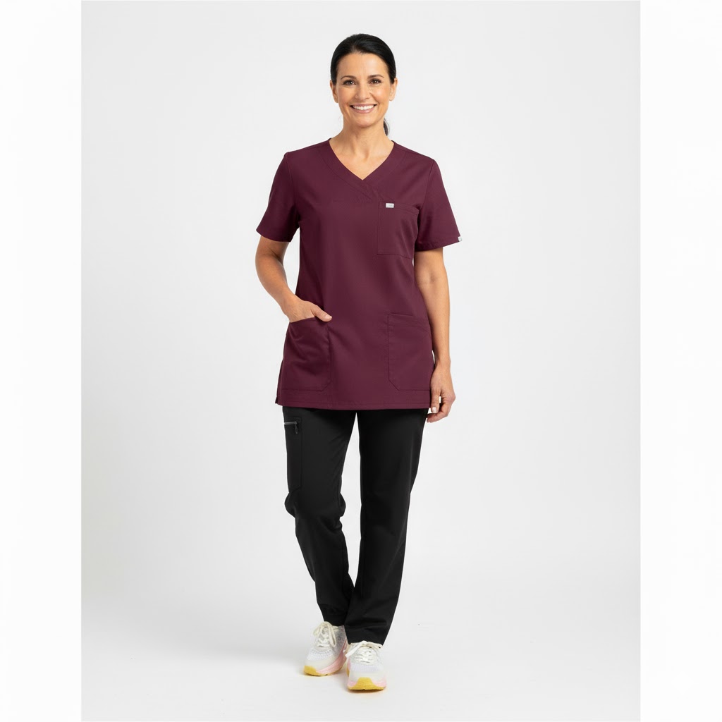 Nybo Bordeaux Damebusseronne Nature, V-Hals, Slidstærk, Strækbar Ryg