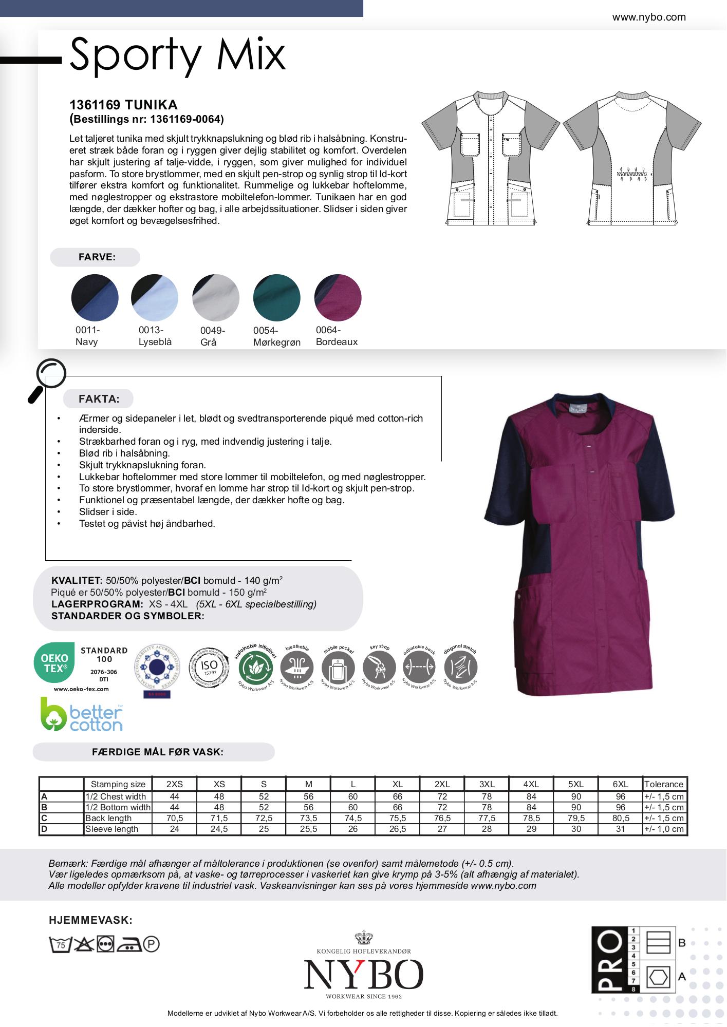 Denne let taljerede dametunika fra Nybo Workwear A/S er en fremragende kombination af stil og funktionalitet. En skjult trykknapslukning og en blød rib i halsåbningen sikrer et pænt og komfortabelt fit. Tunikaen er designet med strækfunktion både foran og i ryggen, hvilket giver fantastisk stabilitet og komfort. Den skjulte taljejustering i ryggen gør det muligt at tilpasse tunikaen individuelt, så den passer perfekt. Med to store brystlommer, herunder en med en skjult pen-strop og synlig strop til ID-kort, er funktionaliteten i top. De rummelige hoftelommer, som er lukkebare, inkluderer nøglestropper og ekstra store lommer til mobiltelefoner. Denne tunika dækker hofter og bag, hvilket gør den ideel til alle arbejdssituationer, og de sidestillede slidser sikrer øget komfort og bevægelsesfrihed.