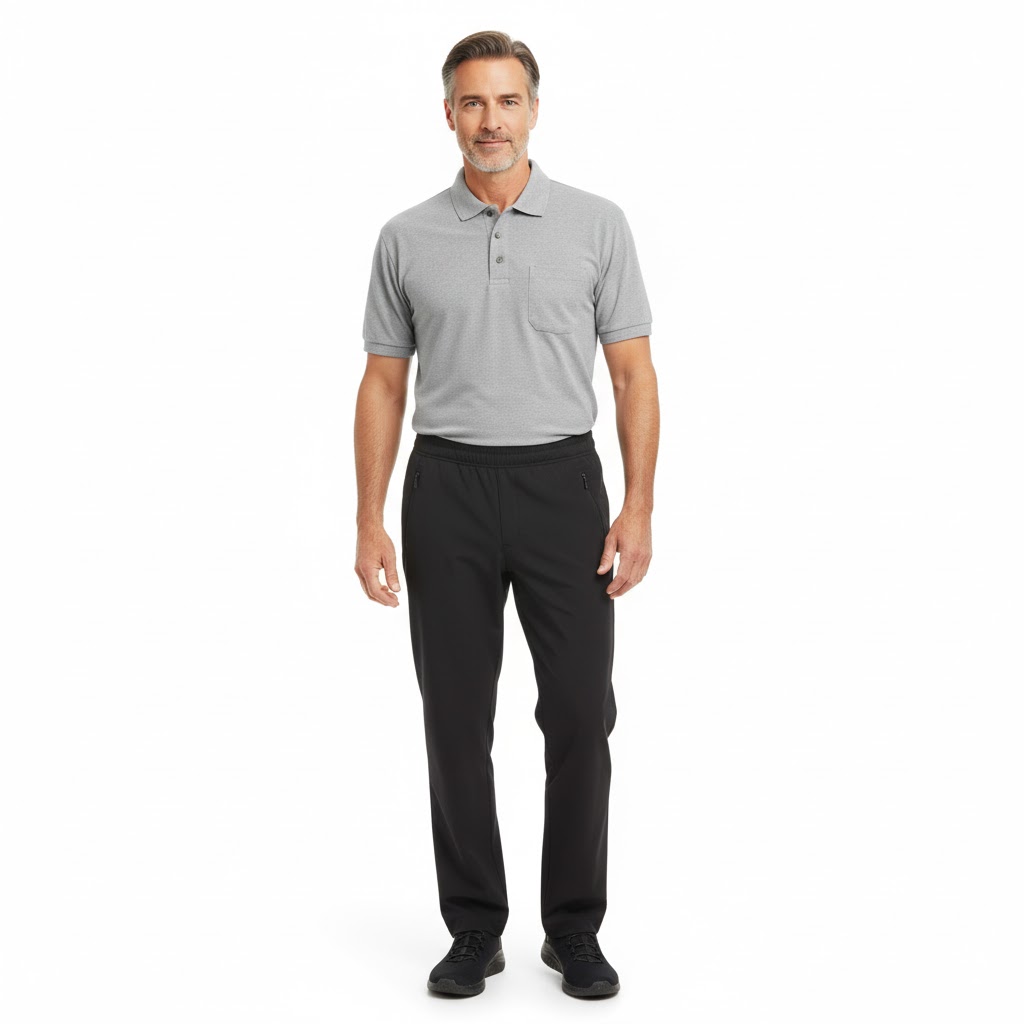 Nybo Grå Melange Herre Basic Polo T-shirt, Slidstærk, Brystlomme