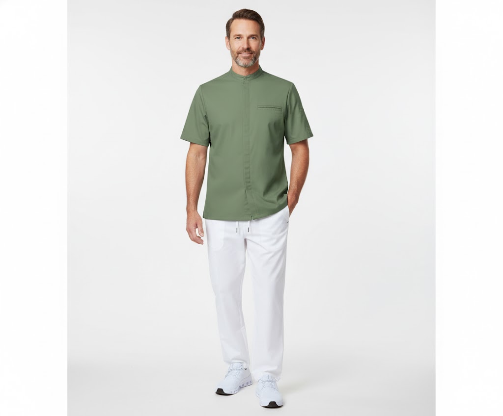 Nybo Grøn Unisex New Nordic Kokkejakke, Kortærmet, Stretch, Komfortabel Pasform