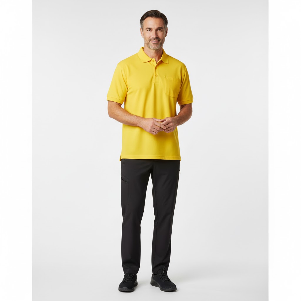 Nybo Gul Herre Prowear Polo, Slidstærk, Brystlomme, Forkrympet