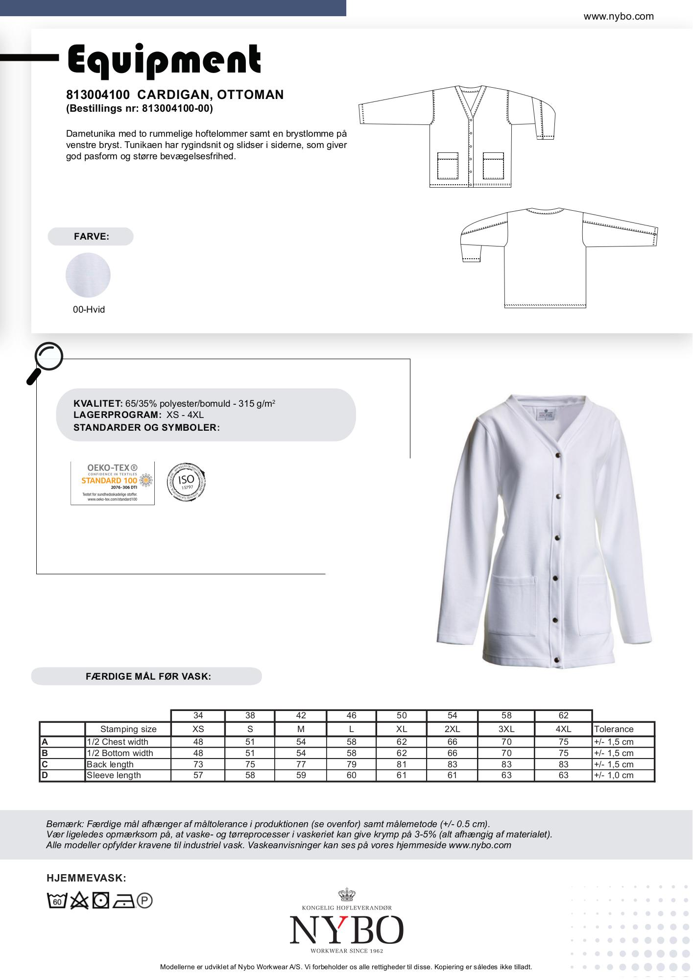 Tilgængelige størrelser: XS, S, M, L, XL, 2XL, 3XL, 4XL. Merpris 15% for overstørrelser 2XL og op.