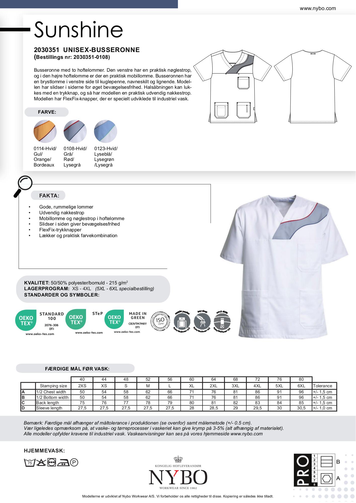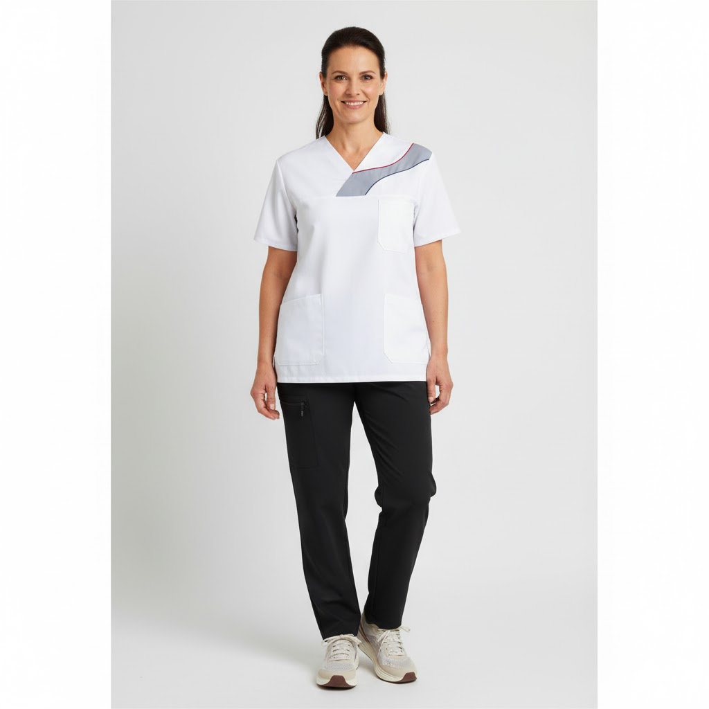 Den praktiske serie til sundhedssektoren er en klassiker inden for CI-beklædning. Udført i Comfortec Satin, er der lagt vægt på størst bomuldsandel ind mod kroppen, hvilket sikrer optimal komfort for brugeren. Serien inkluderer hvide overdele med farvet besætning, der kan tilpasses firmaets logo og identitet.