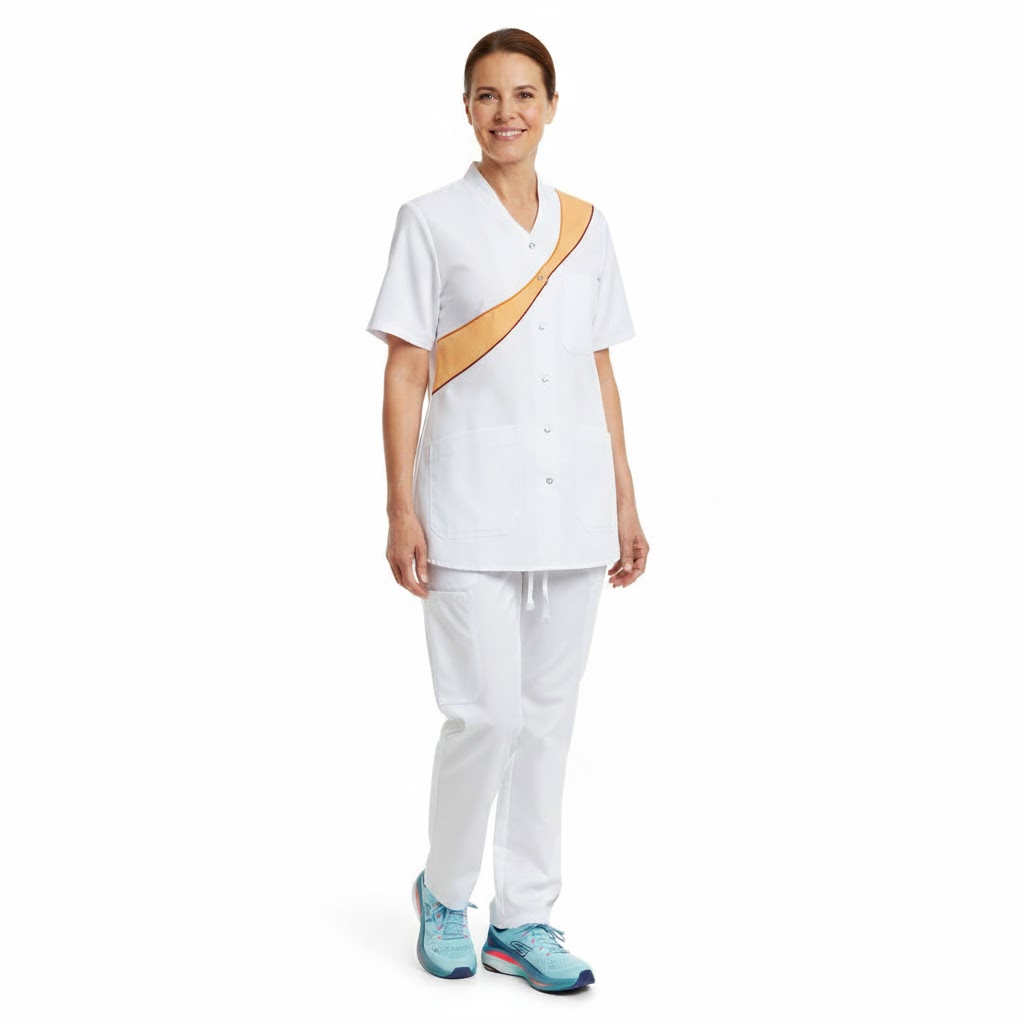 Denne kollektion, bestående af hvidt med farvet besætning, er specielt fremstillet til sundhedssektoren. Her får du beklædning i Comfortec Satin med en høj bomuldsandel ind mod kroppen for maksimal komfort. Med muligheden for at vælge besætningsfarver som hvid/grå og hvid/lyseblå, kan du tilpasse beklædningen til at matche firmaets logo og skabe et ensartet udseende.