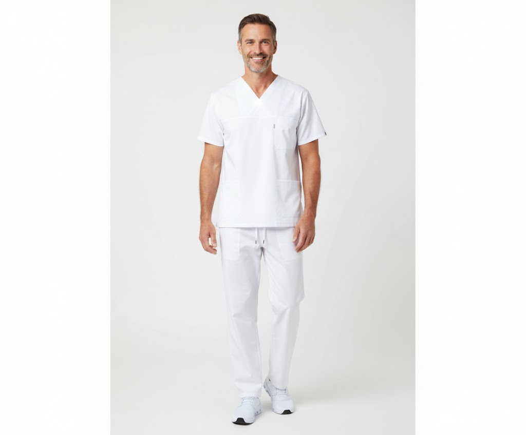 Serien, kendt for sin enkelhed og harmoni, er udført i en særligt blød soft twill metervare med bomuld på indersiden, hvilket skaber en følelse af renhed og hygiejne. Designet i rene, hvide farver, er denne kollektion ideel til arbejdsforhold, hvor udseendet af professionalisme og renhed er vigtigt.