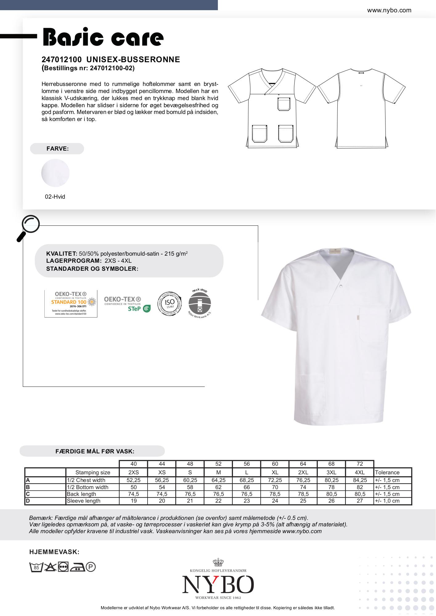 Nybo Hvid Herre Basic-Care Busseronne, Kortærmet, Komfort, Bevægelsesfrihed