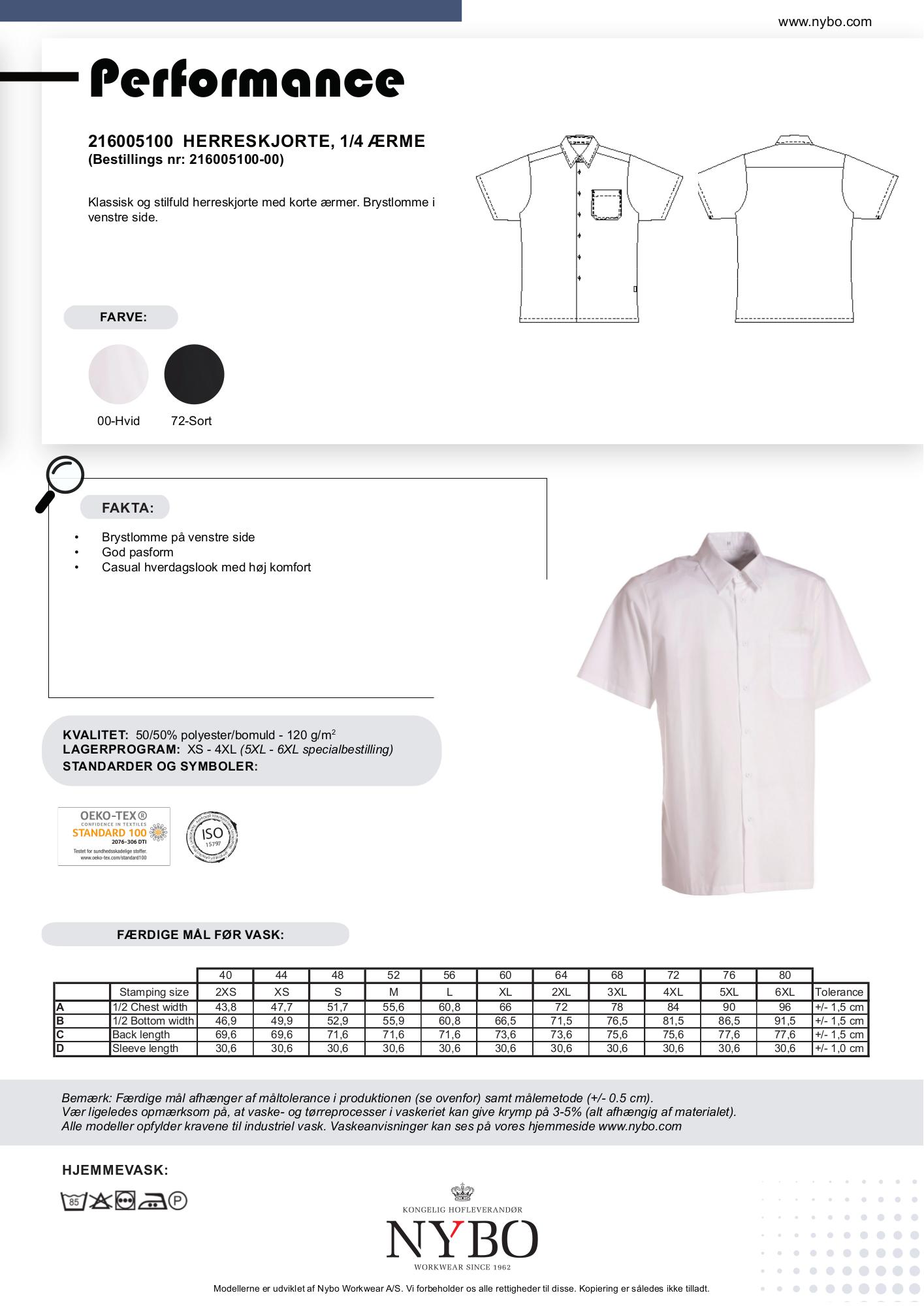 En del af Performance-kollektionen, som henvender sig bredt indenfor servicebranchen, fra hoteller og restauranter til lager og logistik. Disse skjorter er designet til nem industriel vask og tørring, hvilket gør dem til et praktisk valg i krævende arbejdsmiljøer. Ud over den klassiske hvide farve fås denne herreskjorte også i sort, hvilket giver dig mulighed for flere stilfulde valg.