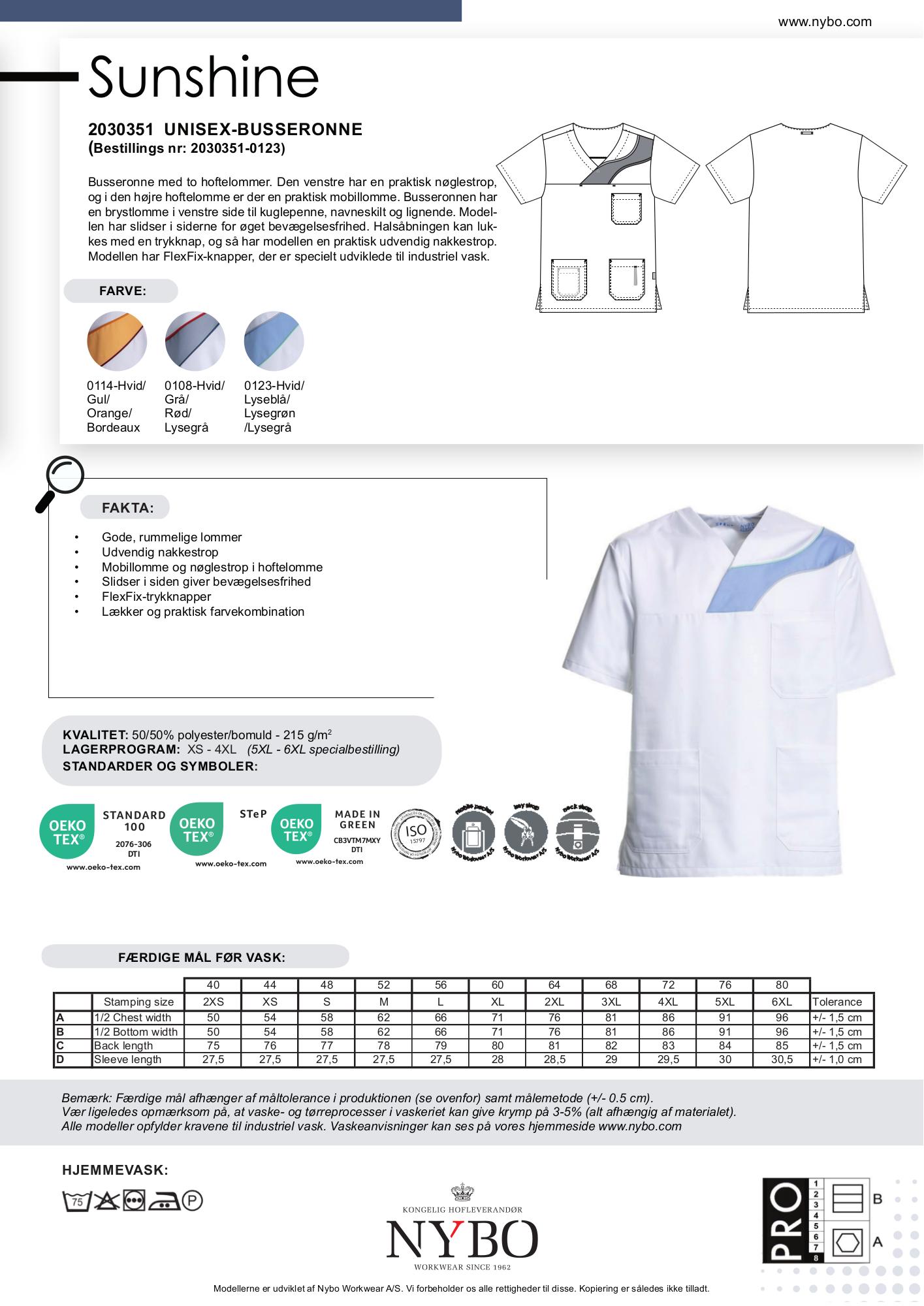 En del af en tidløs kollektion, der er specielt designet til sundhedssektoren, hvor kvalitet og komfort er i højsædet. Denne serie er fremstillet af Comfortec Satin med en høj bomuldsandel, som giver en enestående komfort mod kroppen. Den fås også i hvide/grå og hvide/gule farvekombinationer, hvilket gør det nemt at matche med firmaets logo og CI-beklædning.