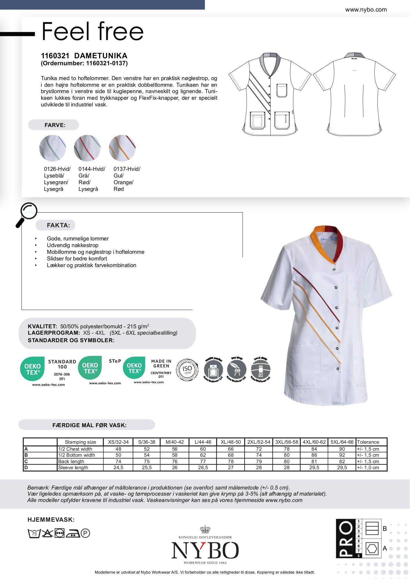 Feel Free-kollektionen er skræddersyet til sundhedssektoren. Udført i det komfortable Comfortec Satin-materiale sikrer det størst muligt bomuldsandel mod huden for en behagelig følelse hele dagen. Kollektionen tilbyder hvide overdele kombineret med farvede kraver og besætninger, som kan tilpasses firmaets logo. Dette er ideelt til CI-beklædning og giver et professionelt og afslappet udtryk.