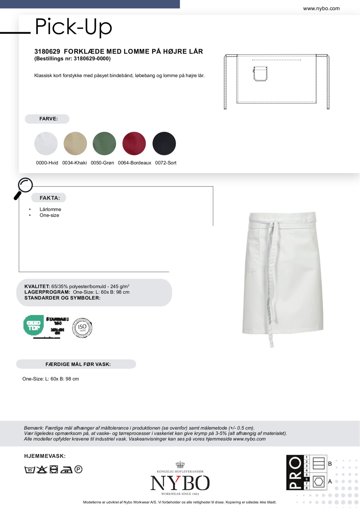 Nybo Workwear A/S præsenterer det funktionelle og stilfulde Nybo Hvid Unisex Pick-Up Forklæde med et praktisk forstykke og en lomme på højre lår. Dette klassiske korte forstykke, forsynet med et påsyet bindebånd og løbebang, tilbyder den perfekte kombination af funktion og design. Med målene 60 cm i højden og 98 cm i bredden sikrer forklædet optimal dækning og komfort for brugeren.